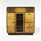 mobile Decò in radica, ottone e vetro trasparente, etichetta della produzione, usure.