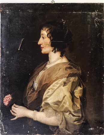 SCUOLA PIEMONTESE DEL XVIII SECOLO - PIEDMONT SCHOOL OF 18TH CENTURY Ritratto di dama con fiore - Portrait of a Lady with Flower olio su tela - oil on canvas, difetti cm 86x68