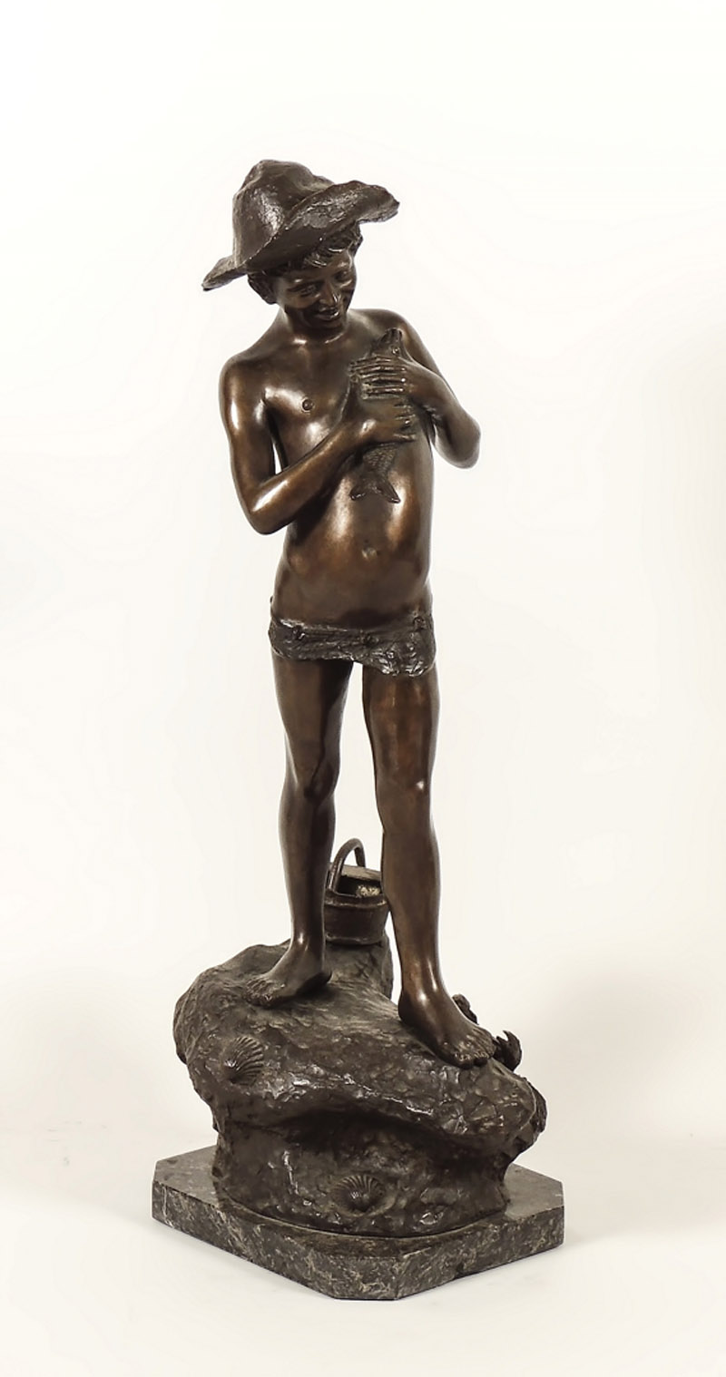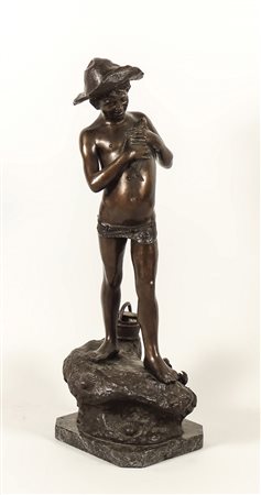 GIOVANNI VARLESE (1888-1922) Pescatorello - Fisherboy scultura in bronzo - bronze, firmata, su base in marmo h cm 77