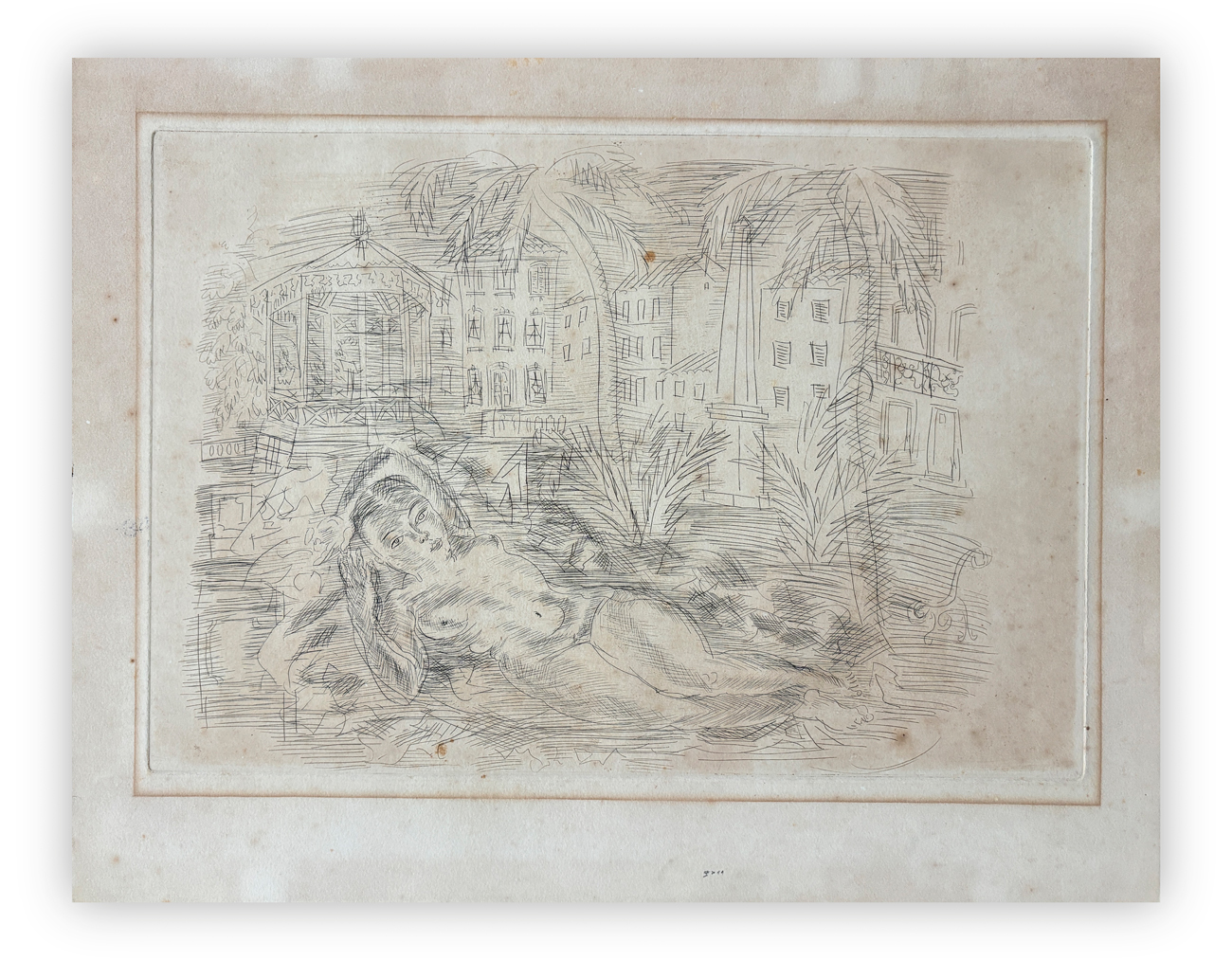 Nu couché aux palmiers avec fond de Côte d'Azur, 1930 circa