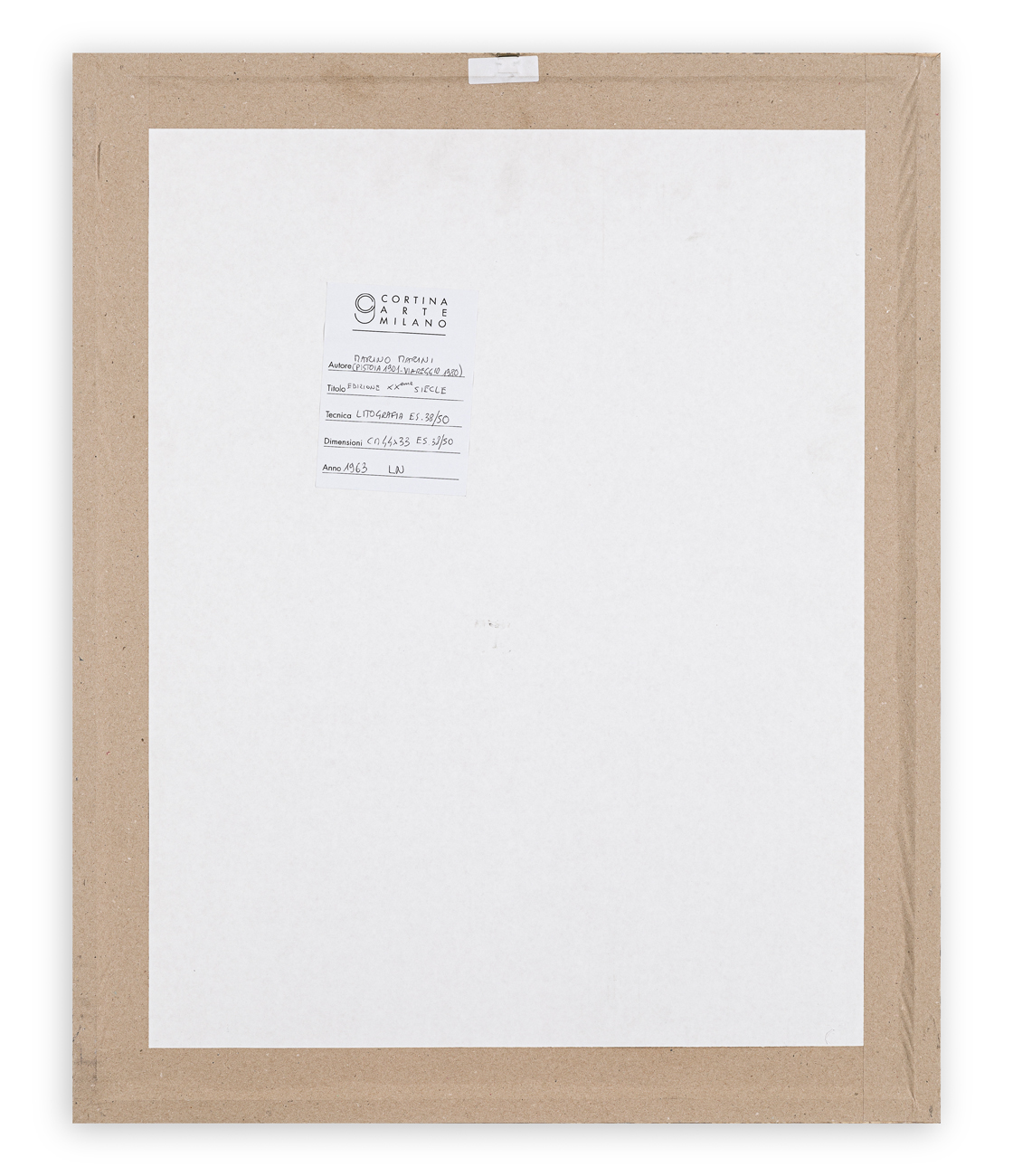 Firma e numerazione (Esemplare 38/50) a matita al fronte