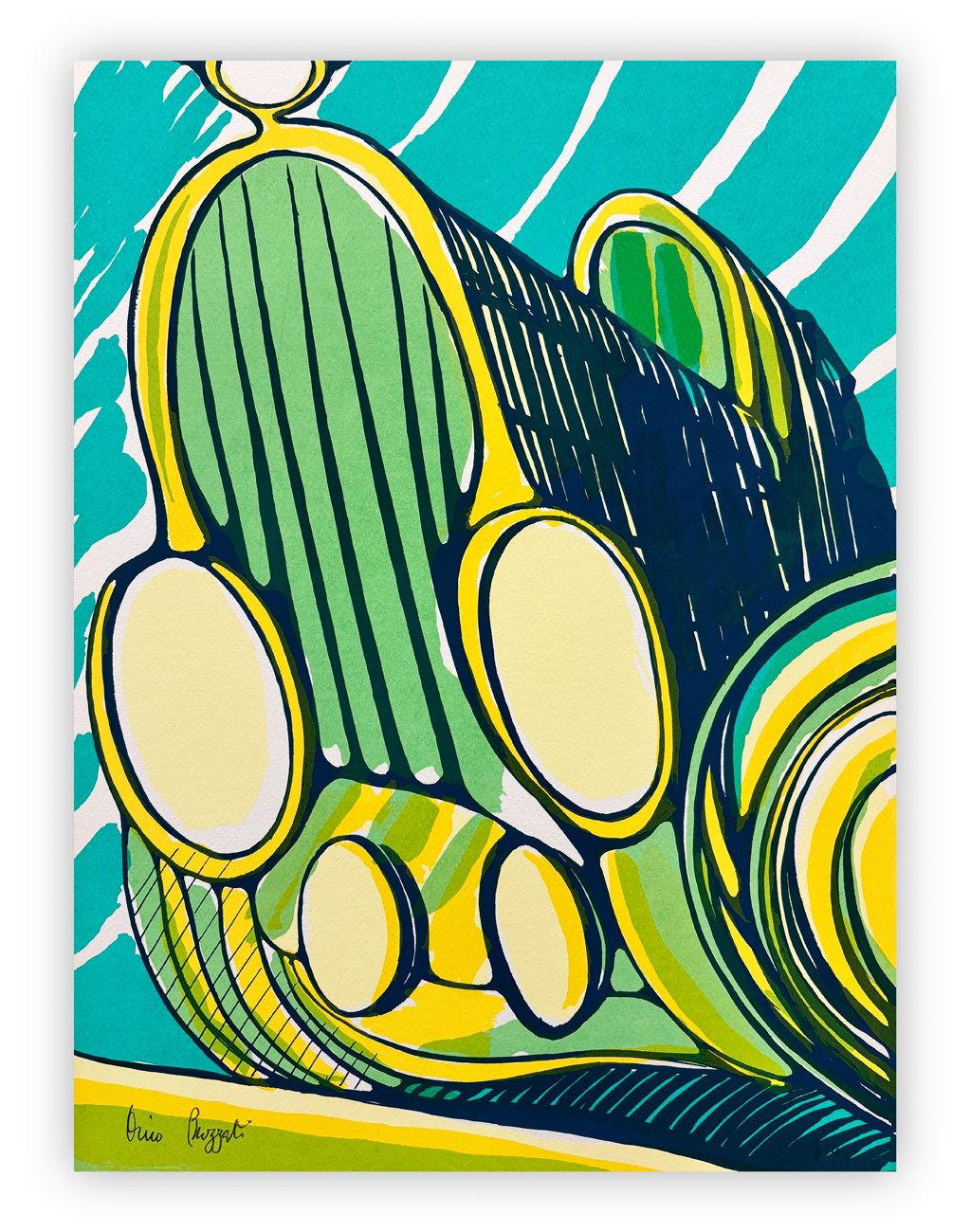 Opera originariamente facente parte della cartella "Vecchia Auto", Edizioni Officina d'Arte Grafica Lucini, Milano