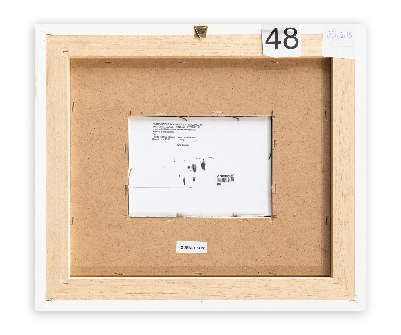 Certificato di autenticità a cura dell'Archivio Generale dell'Opera Pittorica di Mario Schifano - Fondazione Mario Schifano (RM) rilasciato in data 02/08/2007