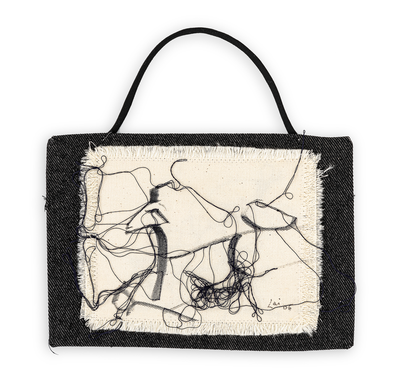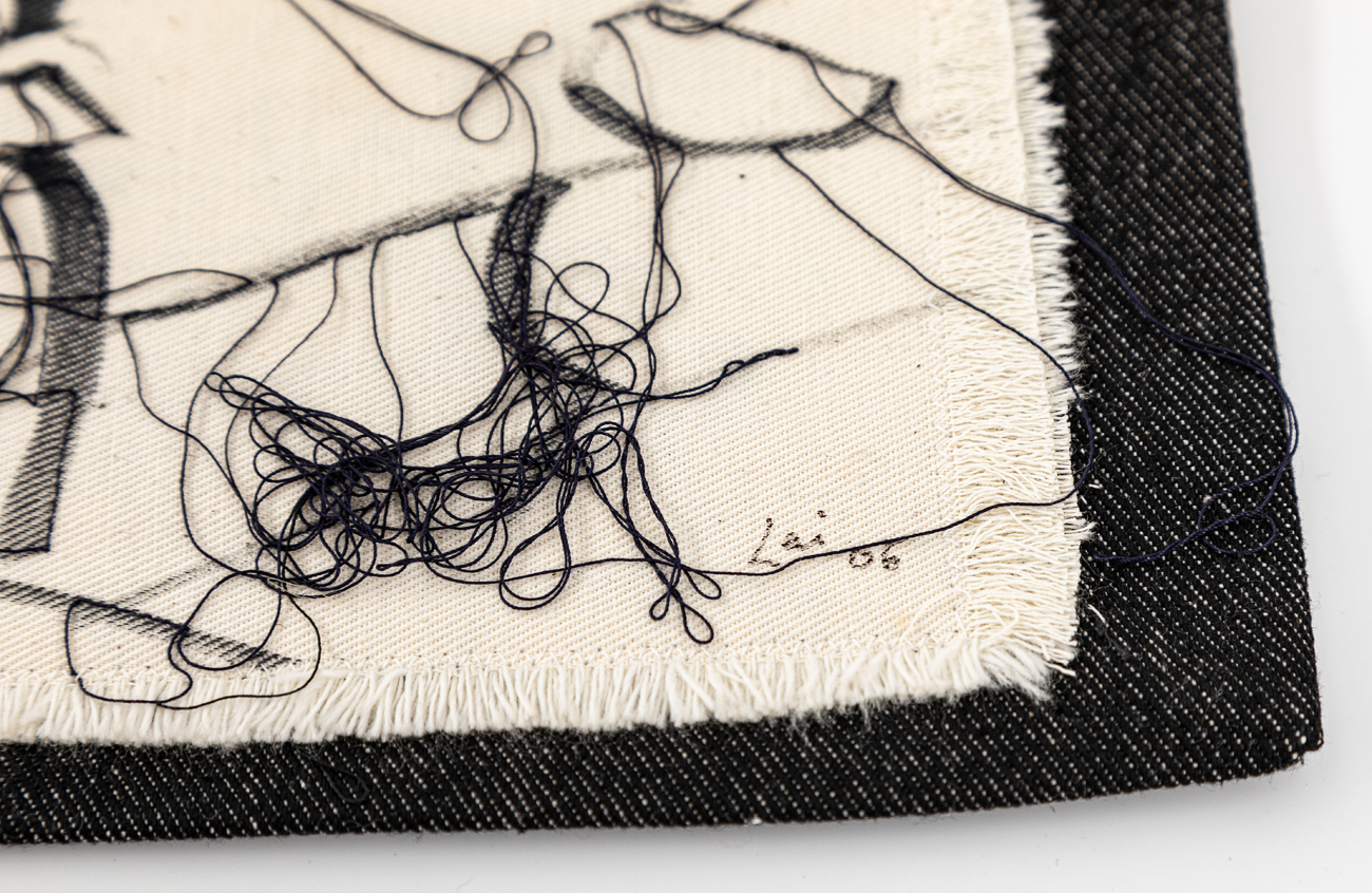 Pennarello e filo su stoffa (stoffa, filo e inchiostro)
