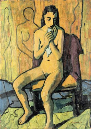Felice Casorati 1883 Novara-1963 Torino Nudo seduto, 1948 olio su cartone...