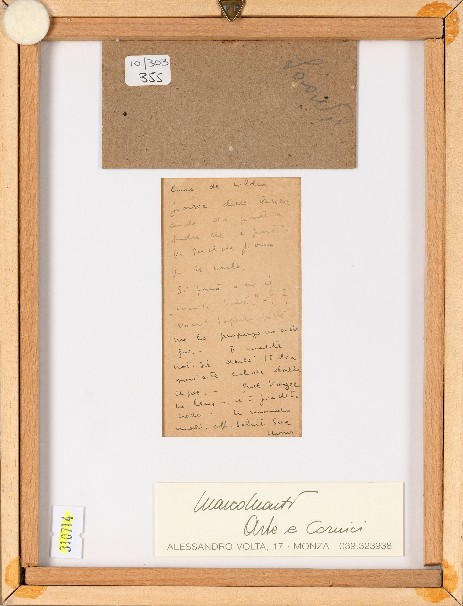 appunti dell'artista al retro