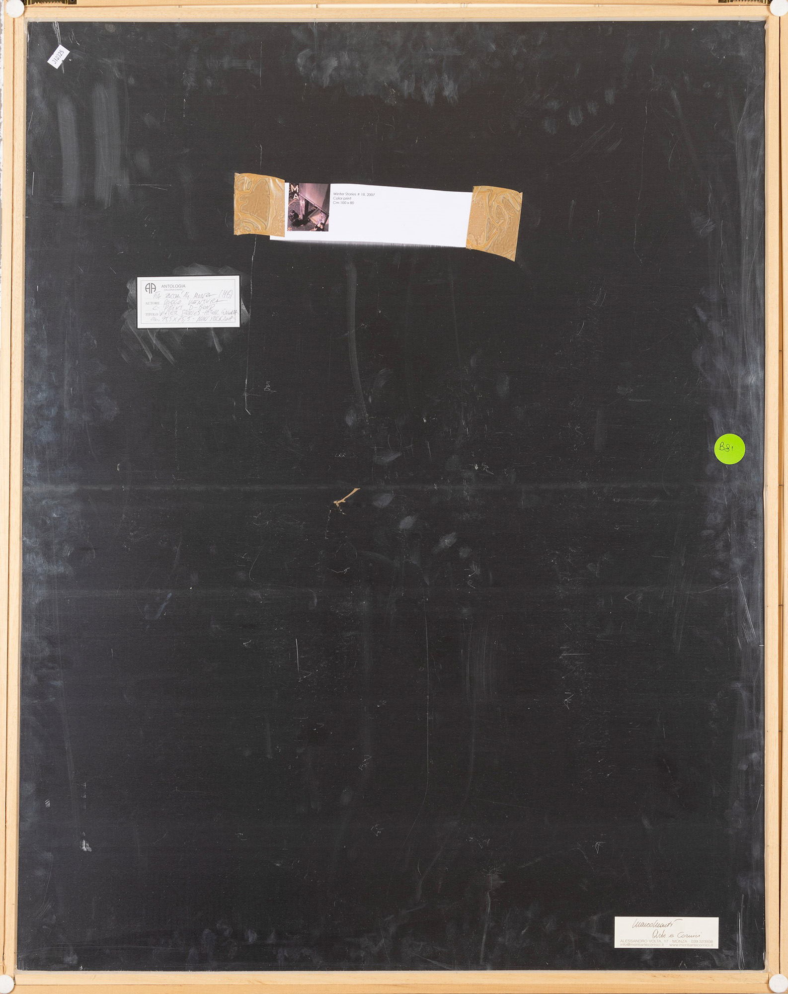 Etichetta al retro della Galleria Antologia, Monza