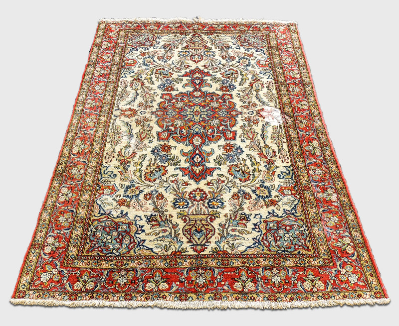 TAPPETO PERSIANO - PERSIAN RUG fondo beige, campo a motivo floreale nei toni...