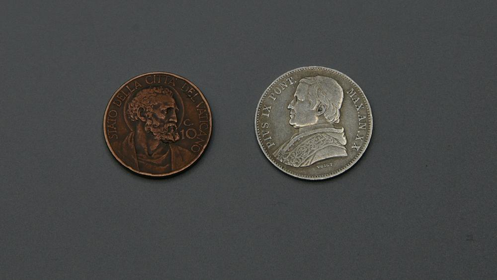 Recto: stemma di Papa Pio XI con indicati ai due lati i millesimi di conio 1933-1934; intorno: PIUS XI.PM.AN.IVB.