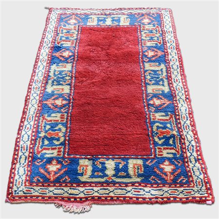 PICCOLO TAPPETO CAUCASICO - SMALL CAUCASIAN RUG fondo bordeaux, alta bordura...