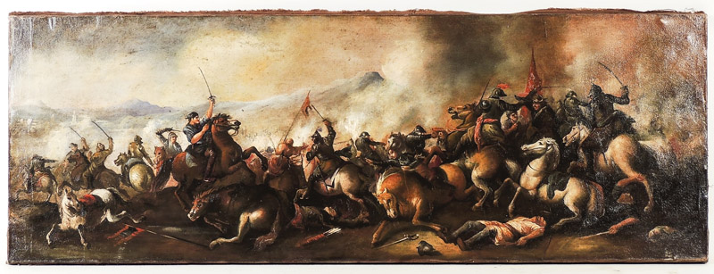 SCENA DI BATTAGLIA - BATTLE SCENE olio su tela - oil on canvas cm 50x140