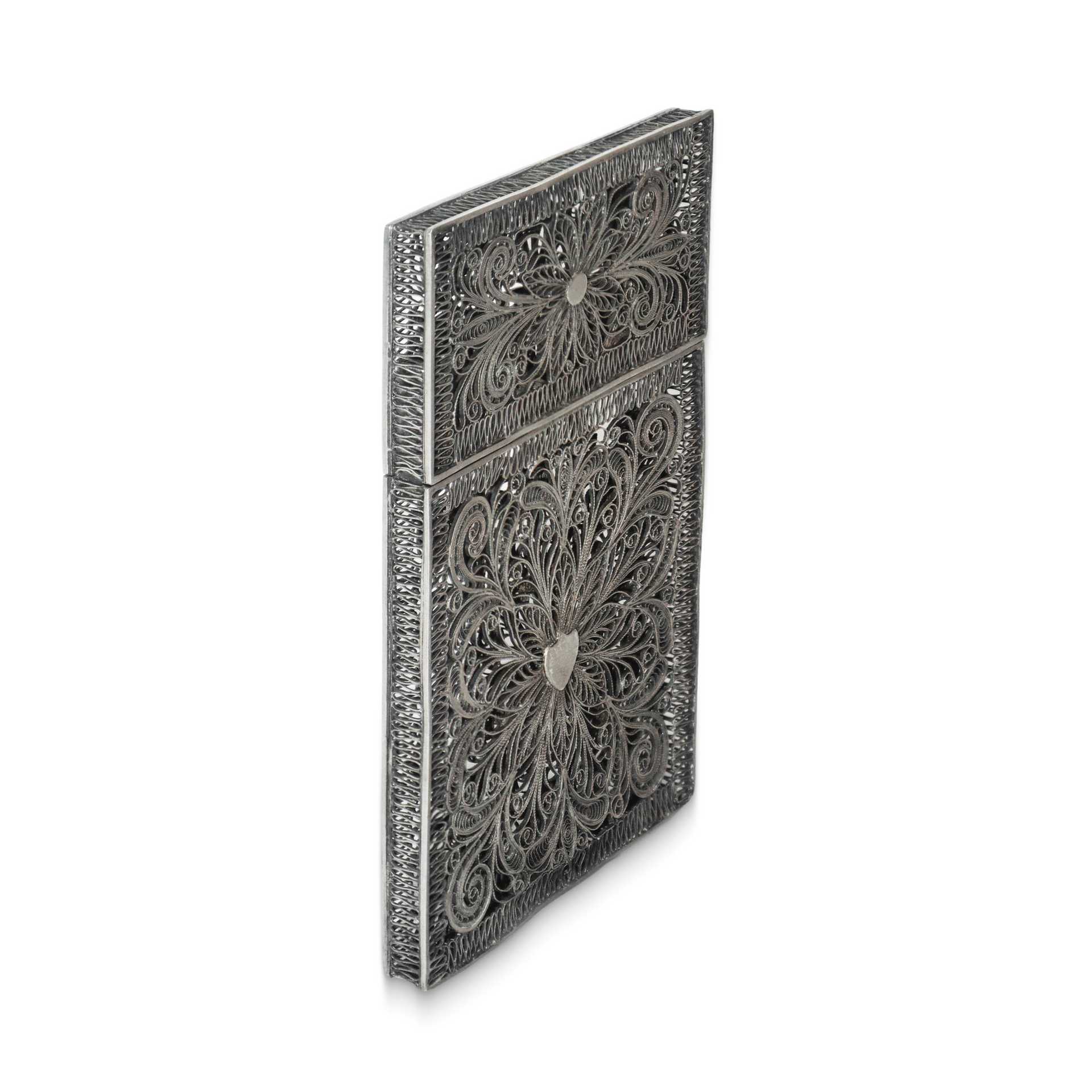 Previous Lot 119 Next Art La Rosa Casa d'Aste - Viale Africa 12, 95129 CATANIA #105: Eclettica #105: Eclettica Thursday 18 July 2024 hours 16:30 (UTC +01:00) Portabiglietti in argento filigranato Portabiglietti in argento filigranato gr.57,4 cm 11X7