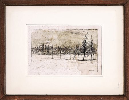 GINO ROMITI (1881-1967) Paesaggio campestre - Country Landscape un disegno a matita e carboncino su carta - pencil and charcoal on paper, firmato e datato 1925, in cornice ed una puntasecca, in cornice (2) cm 30x43 e cm 11x17