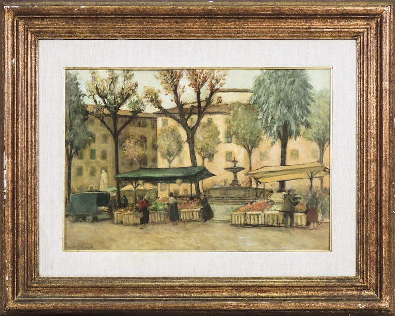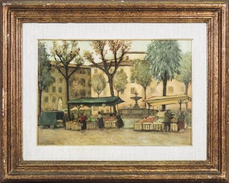 GINO MAGNELLI (1896-?) Piazza Santo Spirito - Santo Spirito Square olio su cartone - oil on cardboard, firmato, in cornice cm 35x50