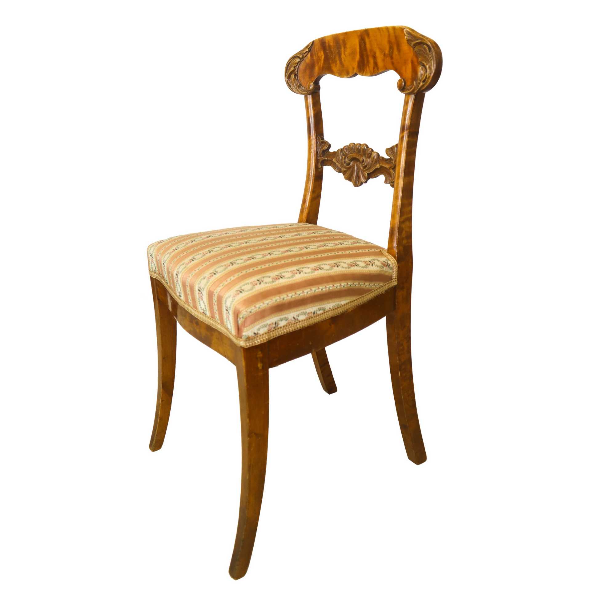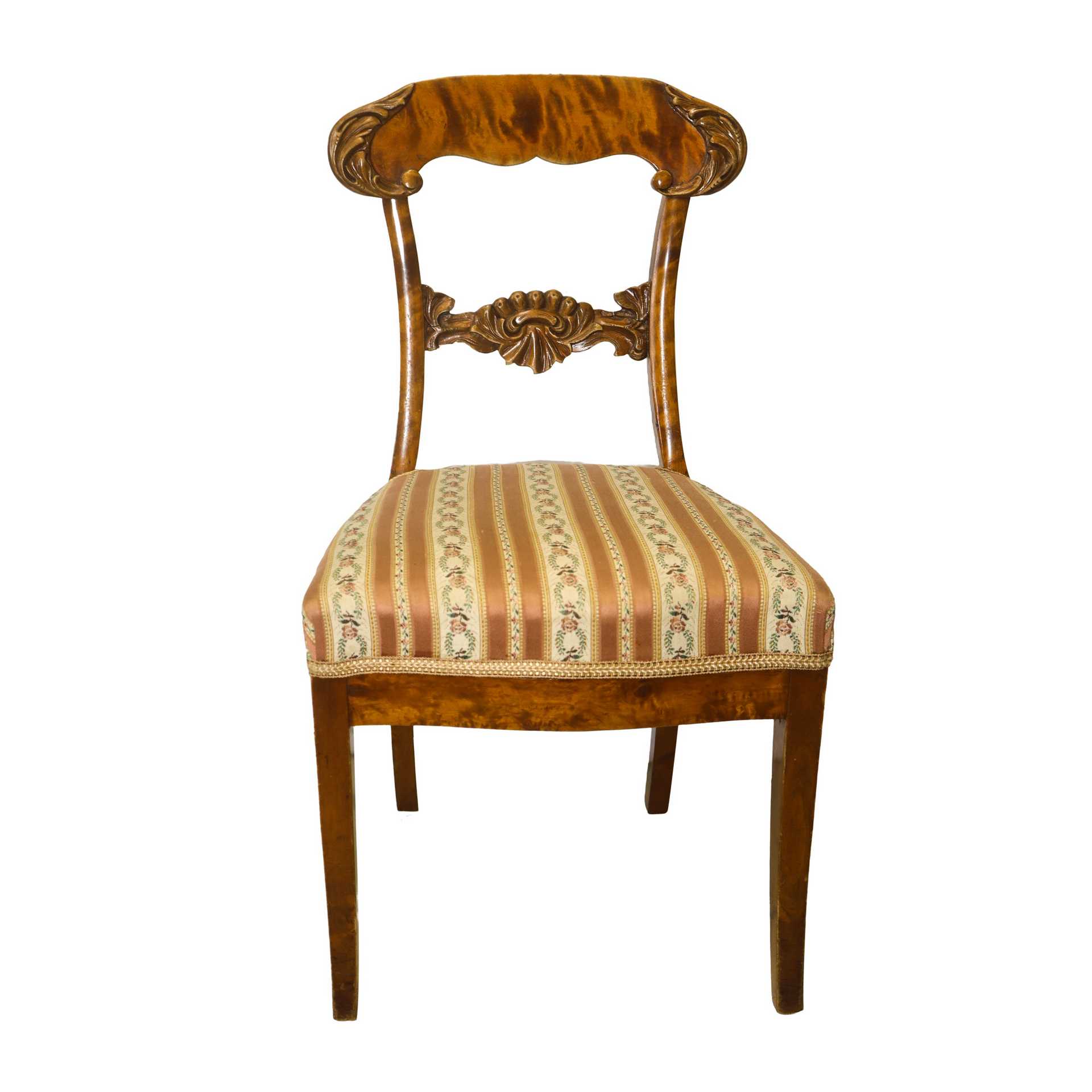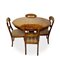 Tavolo rotondo in legno di noce piede a tre razze scolpito a foglie nello stile Luigi Filippo cm 73 diametro cm 102 sedie cm 82 seduta cm 40X40 Il tavolo è corredato di 4 sedie con schienale scolpito a motivi dello stesso stile del tavoloIl tavolo è corredato di 4 sedie con schienale scolpito a motivi dello stesso stile del tavolo