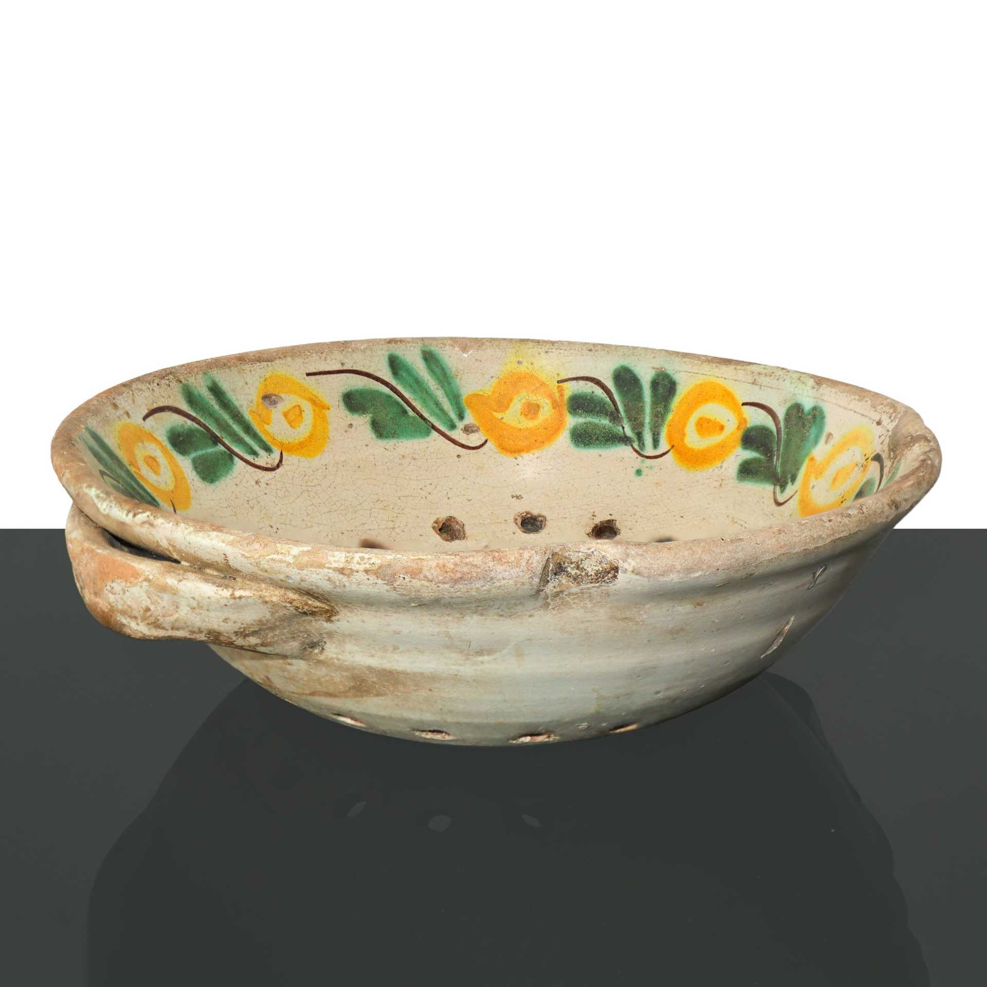 Scolapasta in maiolica policroma di Caltagirone