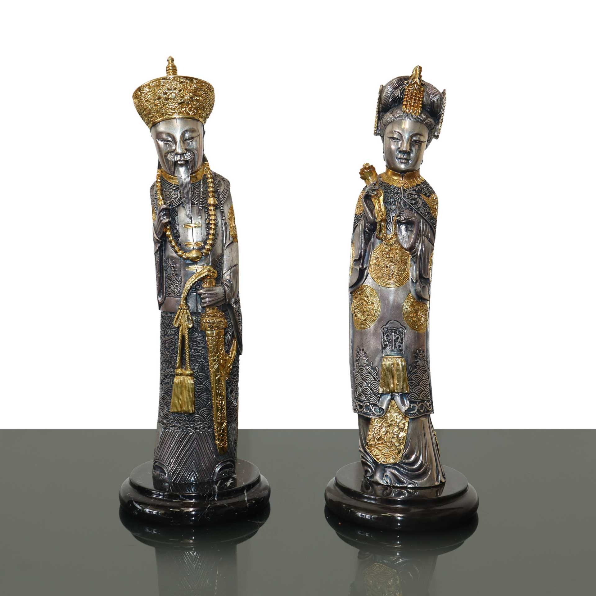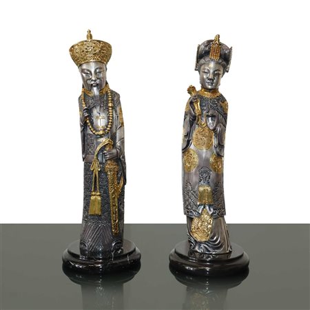Lot 242 | Imperatrice e imperatore cinesi, statuine rivestite in argento e oro