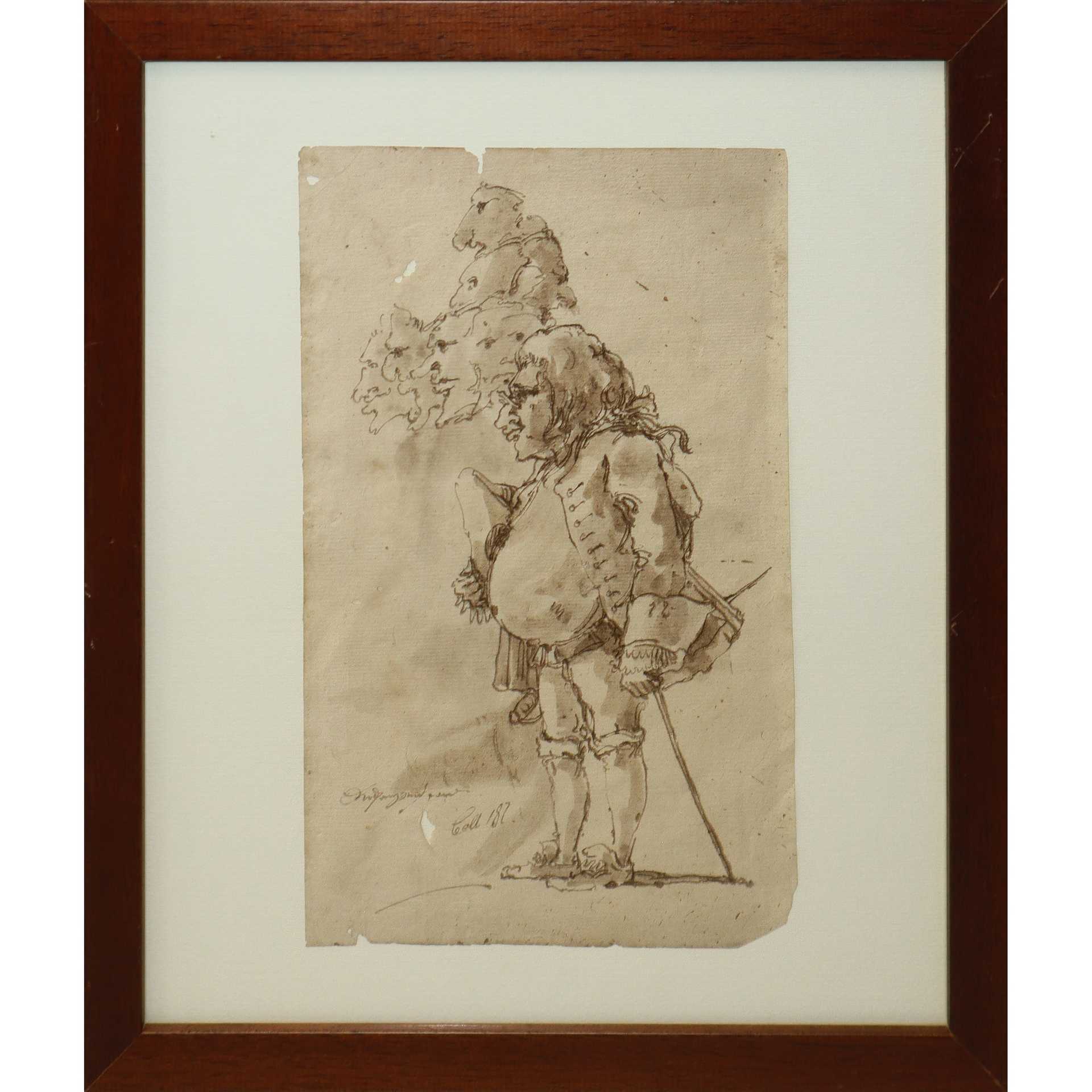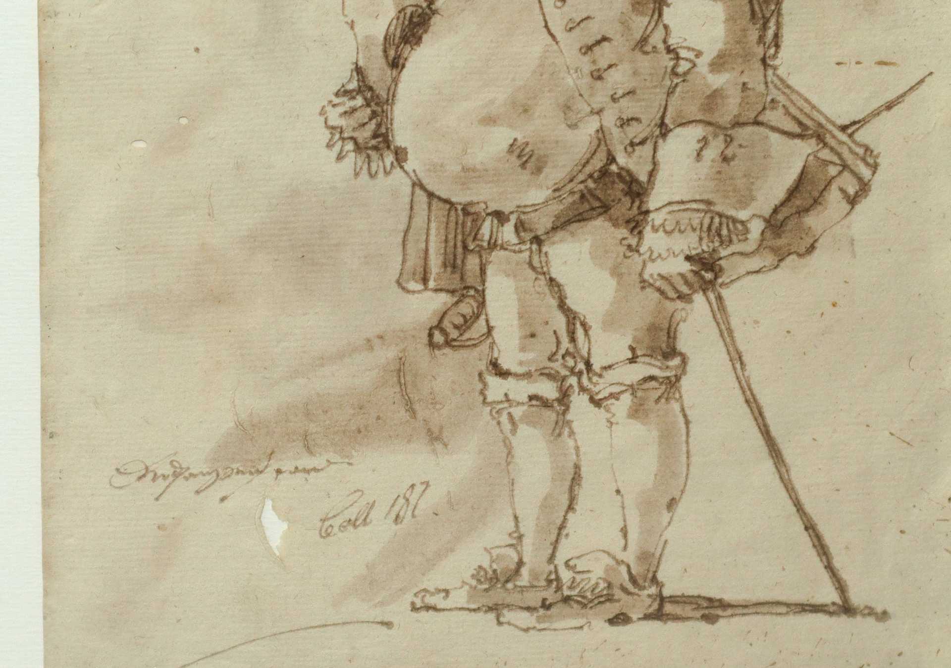 Jacques Callot (Nancy 1592-1635) - Personaggio con bastone H mm 257x163 - in cornice H cm 35x30,5 Disegno a inchiostro bruno
