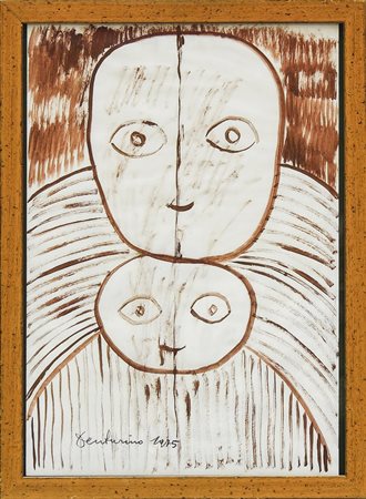 VENTURINO VENTURI (1918-2002) Maternità - Maternity tempera su carta - tempera on paper, firmato e datato 1975, in cornice cm 48x33