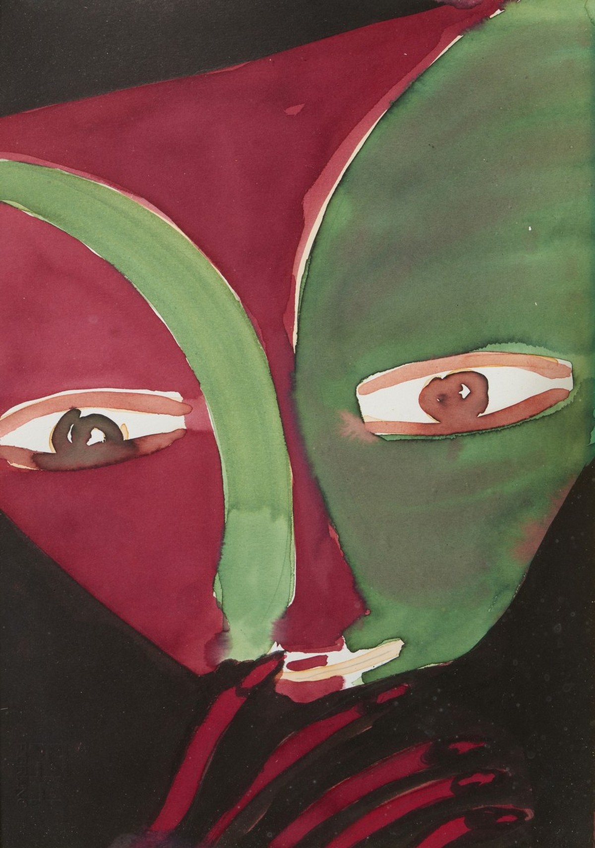 GUIDI VIRGILIO (1891 - 1984) TESTINA, 1973. Acquerello su carta. Cm 24,00 x 33,00. firma.