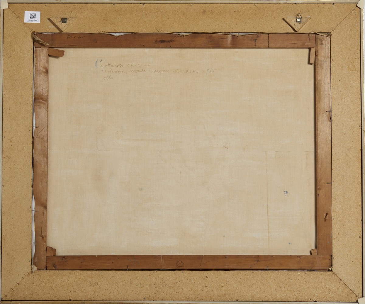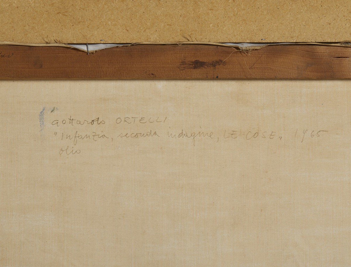 ORTELLI GOTTARDO (1938 - 2003) INFANZIA, SECONDA INDAGINE, LE COSE, 1965. olio su tela. Cm 100,00 x 80,00. sul retro: firma, data e titolo