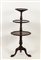 TAVOLINO TONDO A TRE RIPIANI IN MOGANO - THREE TIER MAHOGANY TABLE Inghilterra, inizio del XX secolo - England, early 20th Century bordo sagomato, sostegno centrale su tripode h cm 87