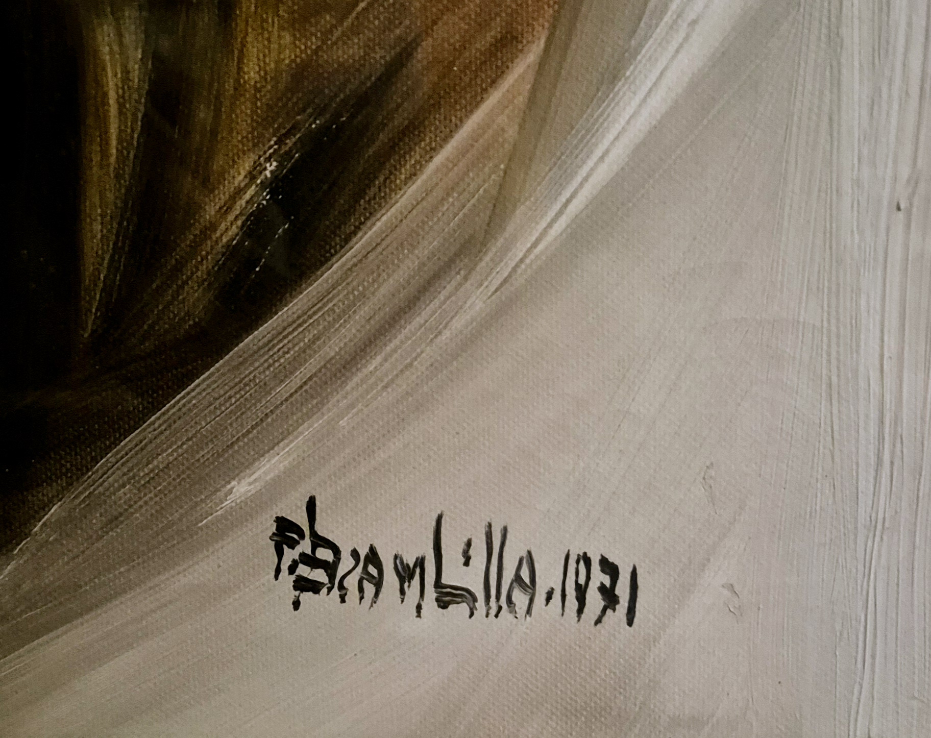 Olio su tela. Firmato e datato in basso a destra P Brambilla 1971. Al verso titolato, datato e firmato. Al verso numeri. In cornice con vetro.