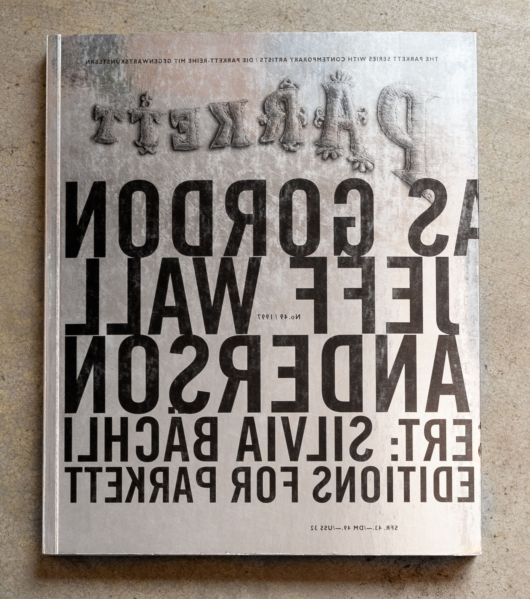 AUTORI VARIParkett Vol. 491997Rivista in collaborazione con Laurie Anderson, Douglas Gordon, Jeff Wall, Silvia Baechli25,5 x 21,5 cmPagine 270Senza difetti