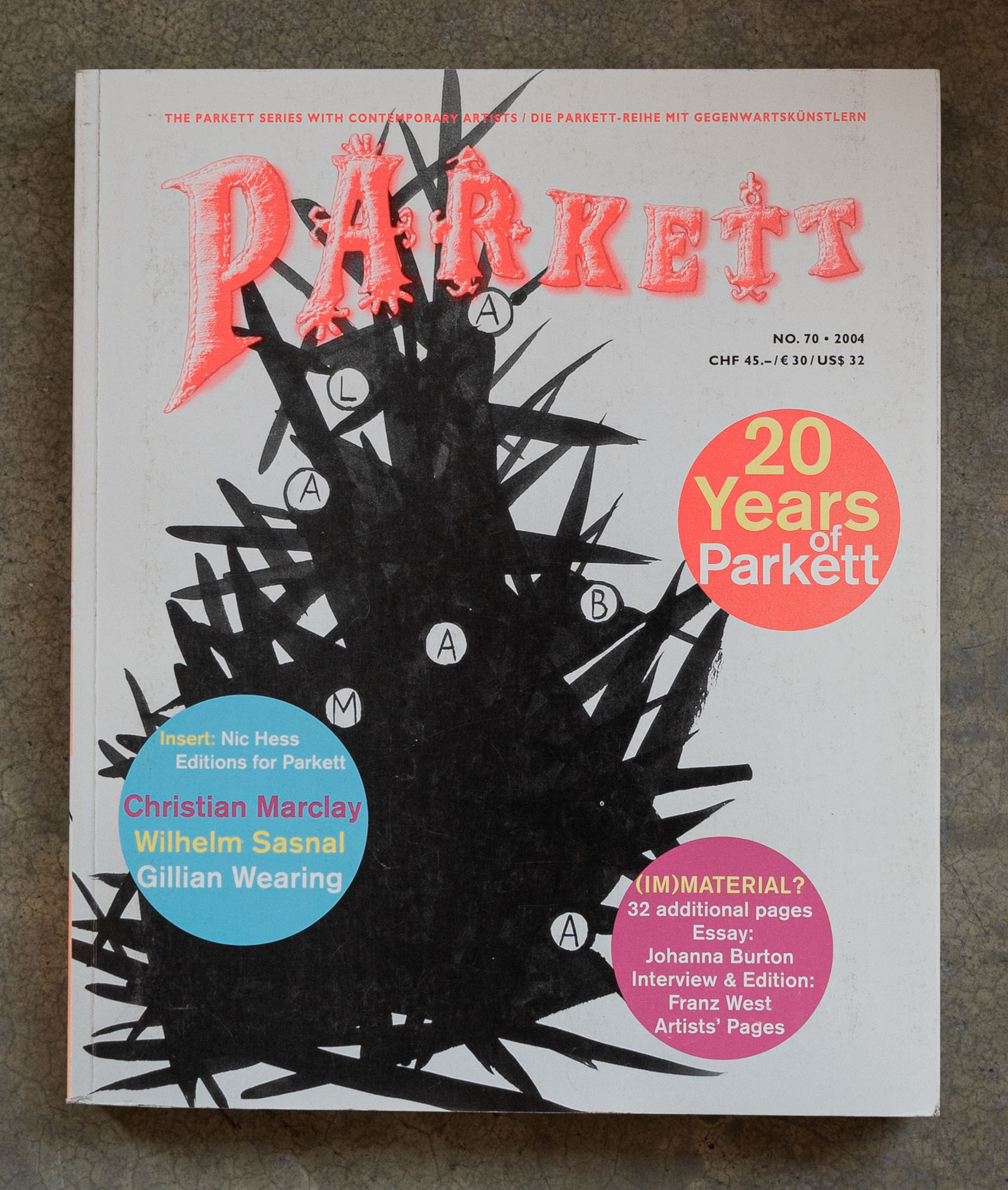AUTORI VARIParkett Vol. 702004Rivista in collaborazione Christian Marclay, Wilhelm Sasnal, Gillian Wearing25,5 x 21,5 cmPagine 197Difetti