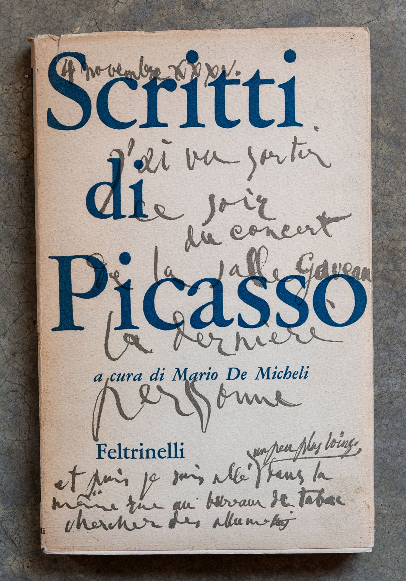 PABLO PICASSO(1881 - 1973)Scritti di Picasso1964Libro monografico illustrato22 x 14,5 cmEditore Feltrinellipagine 195Difetti