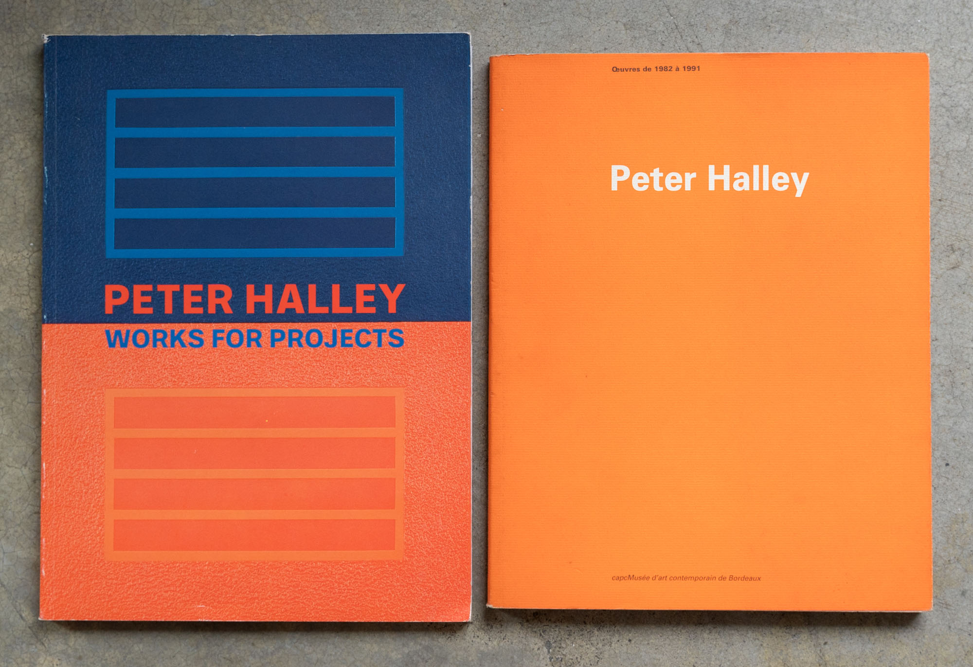 PETER HALLEY(1953)Lotto di due cataloghiPeter Hallery - Oeuvres de 1982 a 19911991Catalogo monografico illustrato edito in occasione della mostra tenutasi presso il Musée d'Art Contemporin, Bordeaux (6 dicembre 1991 - 2 febbraio 1992)28 x 22 cmEdizione del museoPagine 98DifettiPeter Halley - Works for projectsCatalogo monografico illustrato30 x 22 cmSenza numero di pagineDifetti