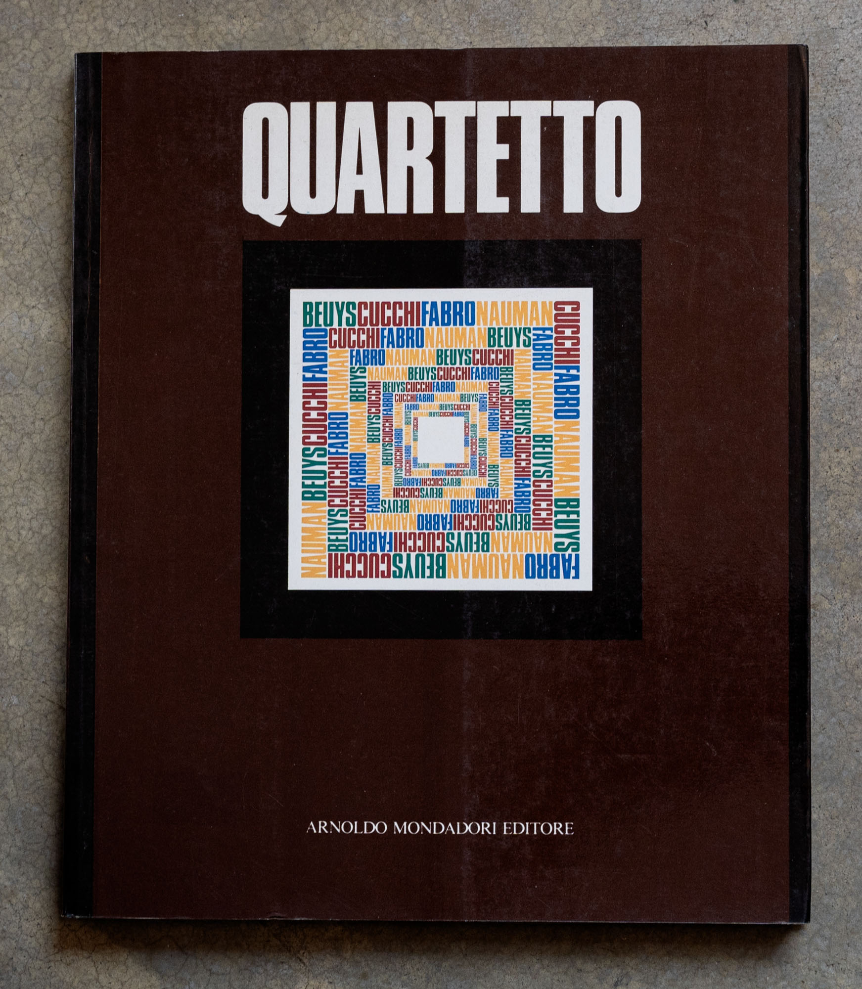AUTORI VARIQuartetto (Joseph Beuys, Enzo Cucchi, Luciano Fabro, Bruce Nauman)1984Catalogo illustrato27 x 23 cmMondadori EditoreSenza numero di pagineDifetti