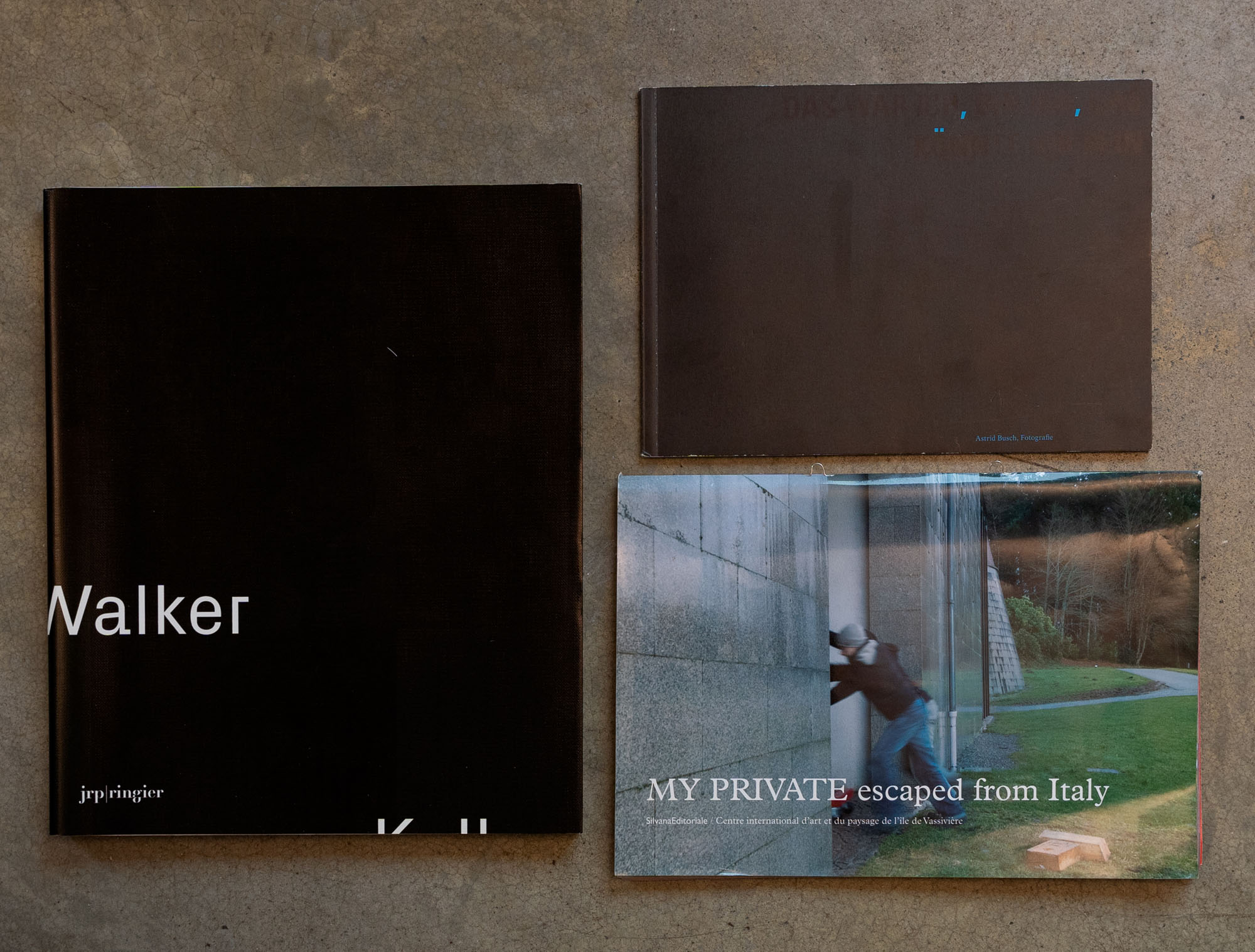 KELLY WALKER(1969)Lotto di tre cataloghiAstrid Busch - Das war ich, bin ich, das könnte ich sein2006Catalogo monografico illustrato edito in occasione della mostra tenutasi presso Kunstraum Kreuzberg/Bethanien, Berlino (28 ottobre - 3 dicembre 2006)16,5 x 22,5 cmEdizione della galleriaSenza numero di pagine DifettiMy private escaped from Italy2009Catalogo illustrato 26 x 18 cmSilvana EditorialeSenza numero di pagine DifettiWalker Kelly2007Catalogo monografico illustrato 28,5 x 24 cmEdizione JRP/RingierPagine 160Difetti