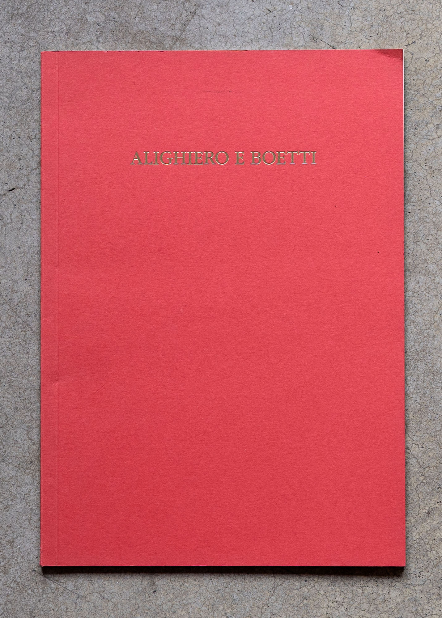ALIGHIERO BOETTI(1940 - 1994)Alighiero e Boetti. Cieli ad alta quota1989Catalogo monografico illustrato edito in occasione della mostra tenutasi presso la Galleria Toselli, Milano (8 giugno - 29 luglio 1989)27 x 19 cmEdizione della galleriaSenza numero di pagineDifetti