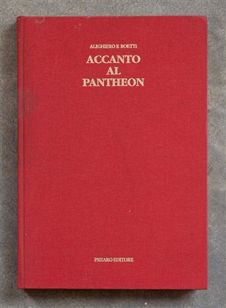 ALIGHIERO BOETTI(1940 - 1994)Alighiero e Boetti. Accanto al Pantheon1991Catalogo monografico illustrato realizzato in 2000 esemplari30 x 21 cmEdizione PrearoSenza numero di pagineDifetti