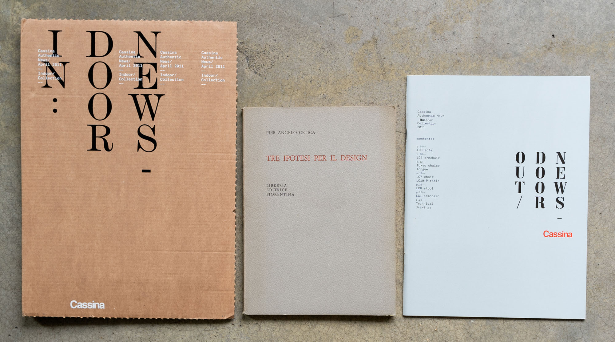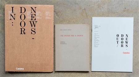 LOTTO MULTIPLOLotto di tre cataloghiCassina Authentic News Indoor Collection2011Catalogo illustrato27 x 19,5 cmEdizione CassinaSenza numero di pagineSenza difettiCassina Authentic News Outdoor Collection2011Catalogo illustrato24,5 x 18,5 cmEdizione CassinaSenza numero di pagineSenza difettiTre ipotesi per il design1964Libro21,5 x 16 cmLibreria Editrice FiorentinaPagine 98Difetti