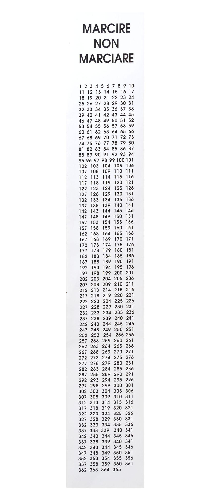 MAURIZIO CATTELAN(1960)Marcire non marciare1991Stampa litografica su carta, es. 8/50 su una tiratura di 50 esemplari80 x 12 cmFirma, data e numerazione al retroBIBLIOGRAFIA:Cfr. V. Peruzzi, MAURIZIO CATTELAN grafiche e multipli - graphics and multiples, 2012, pag. 55 (ill.)