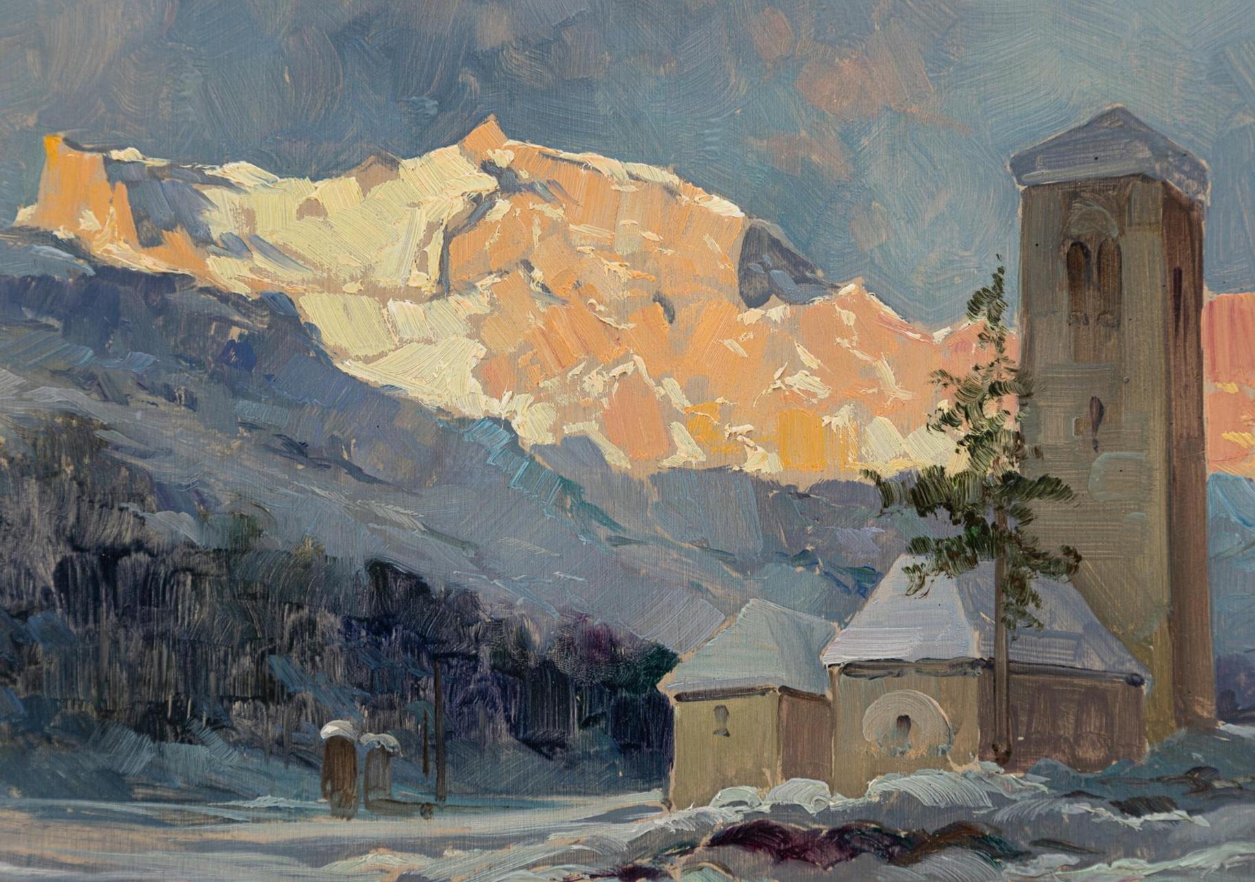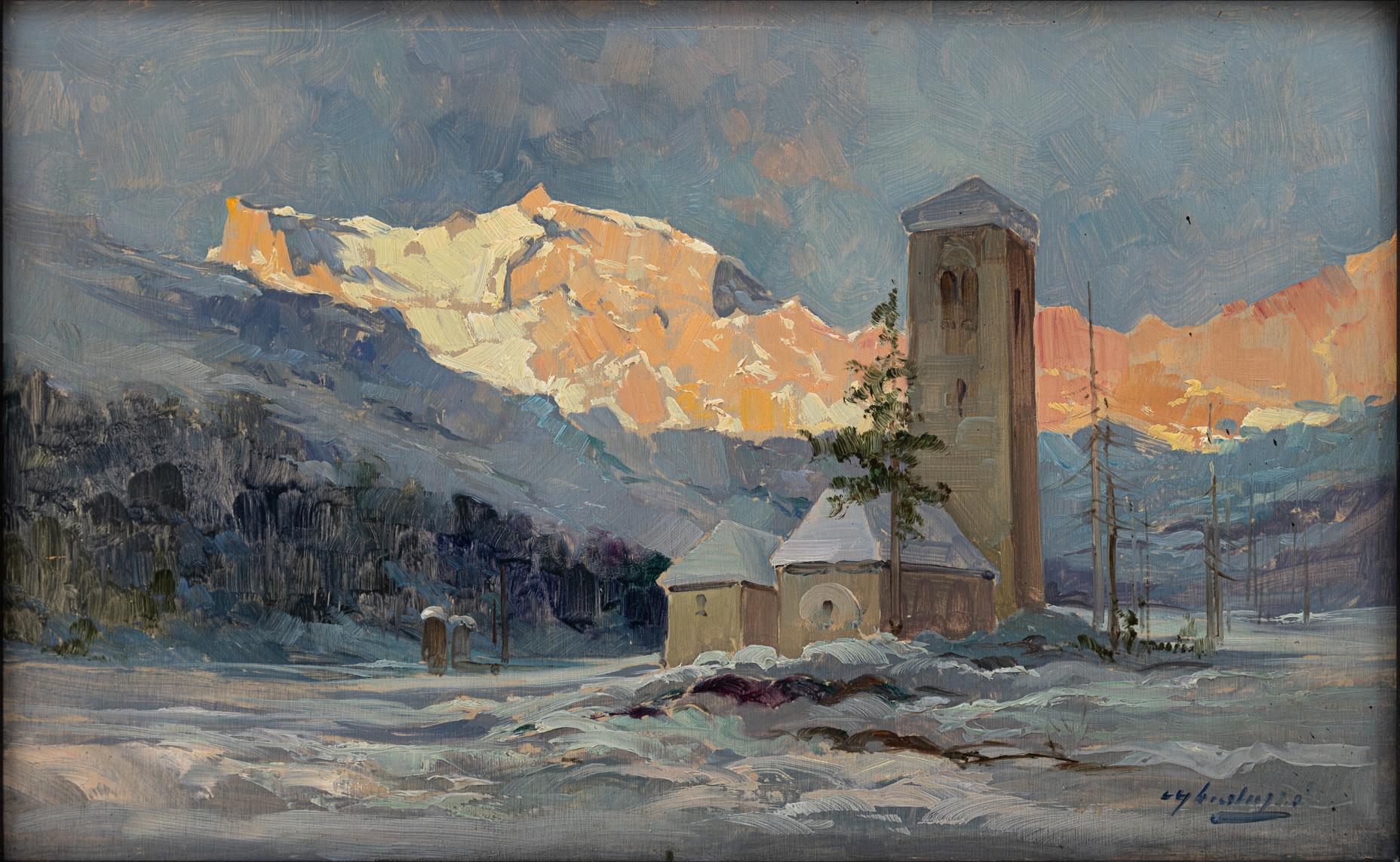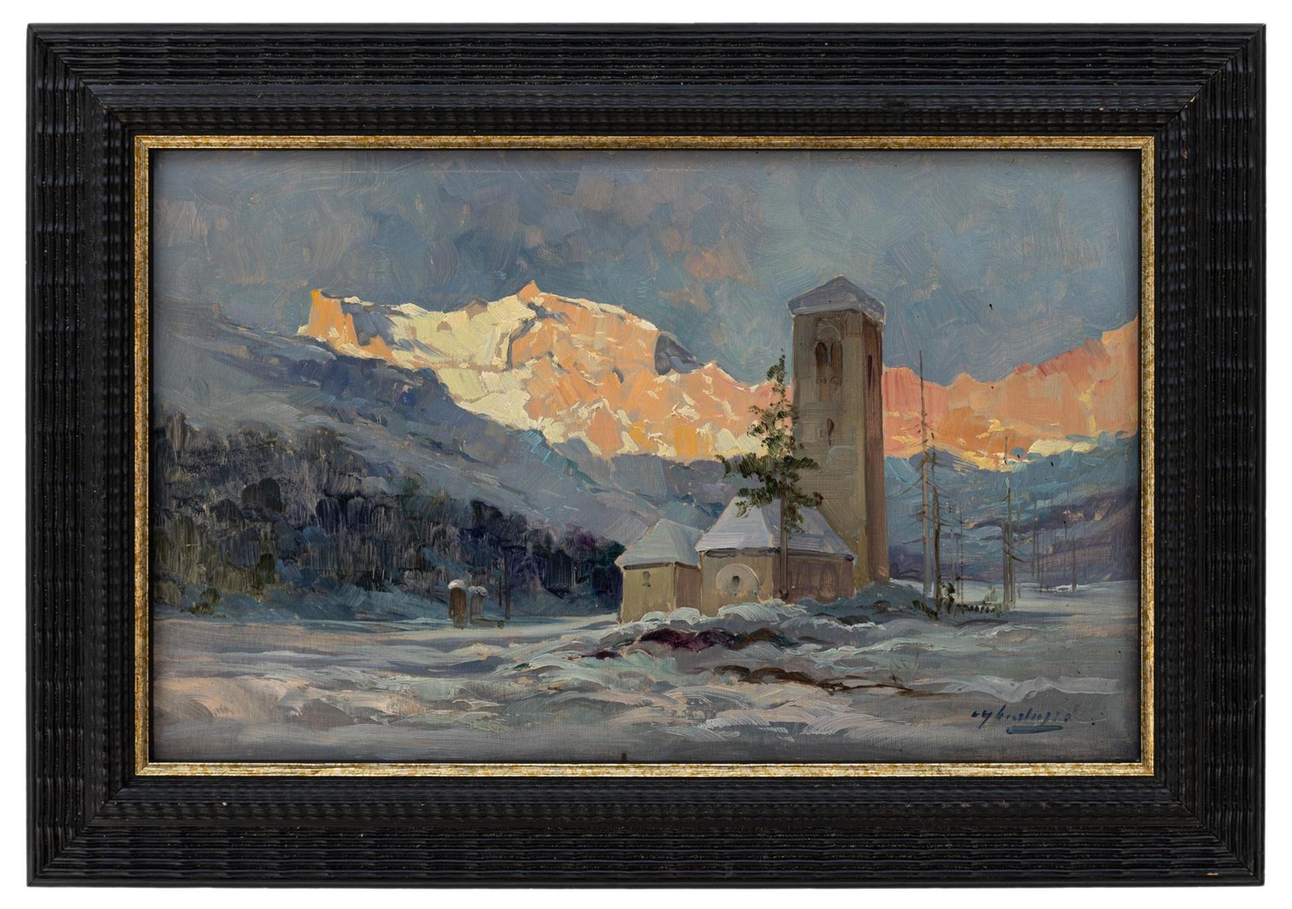 Cesare Gheduzzi - Chiesa vecchia Macugnaga - Crespellano BO 1894 - Torino 1944 - Olio su tavola cm 27x43