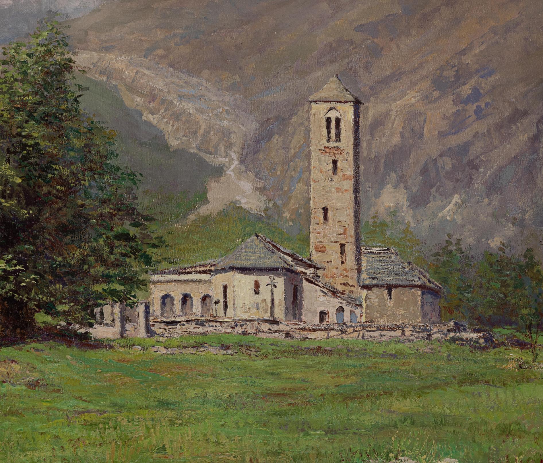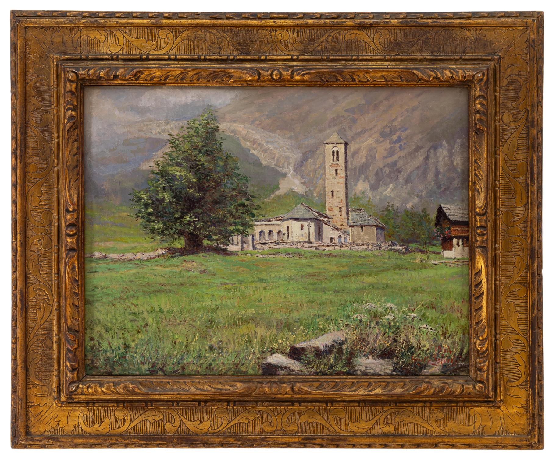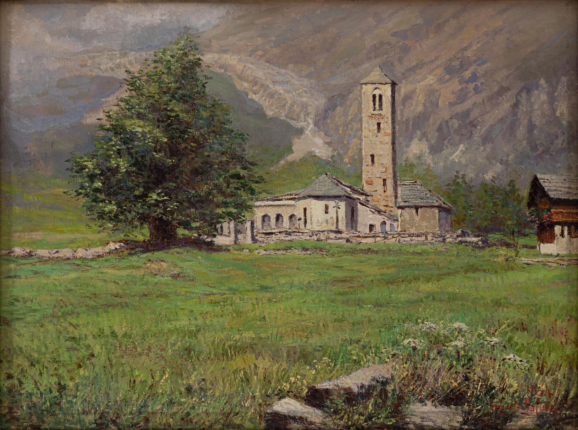 Augusto Laforet - La vecchia chiesa a Macugnaga 1934 - Milano 1881 - Ghiffa 1970 ( Verbano-Cusio-Ossola ) - Olio su tela cm 44,5x60