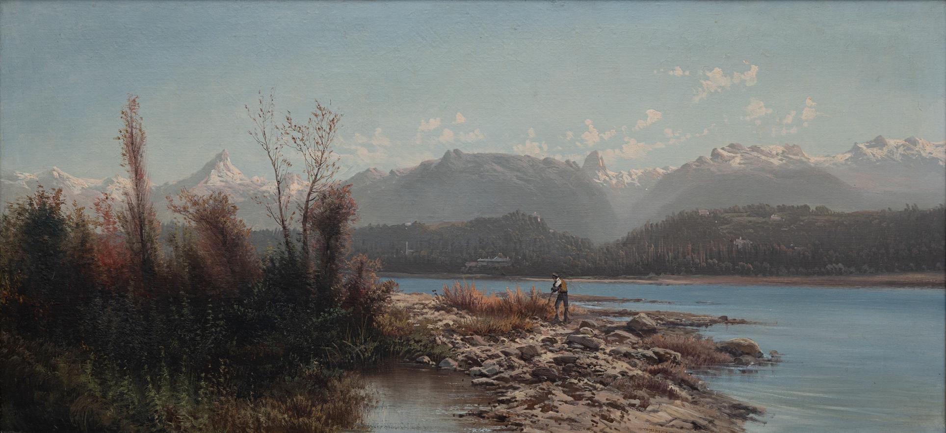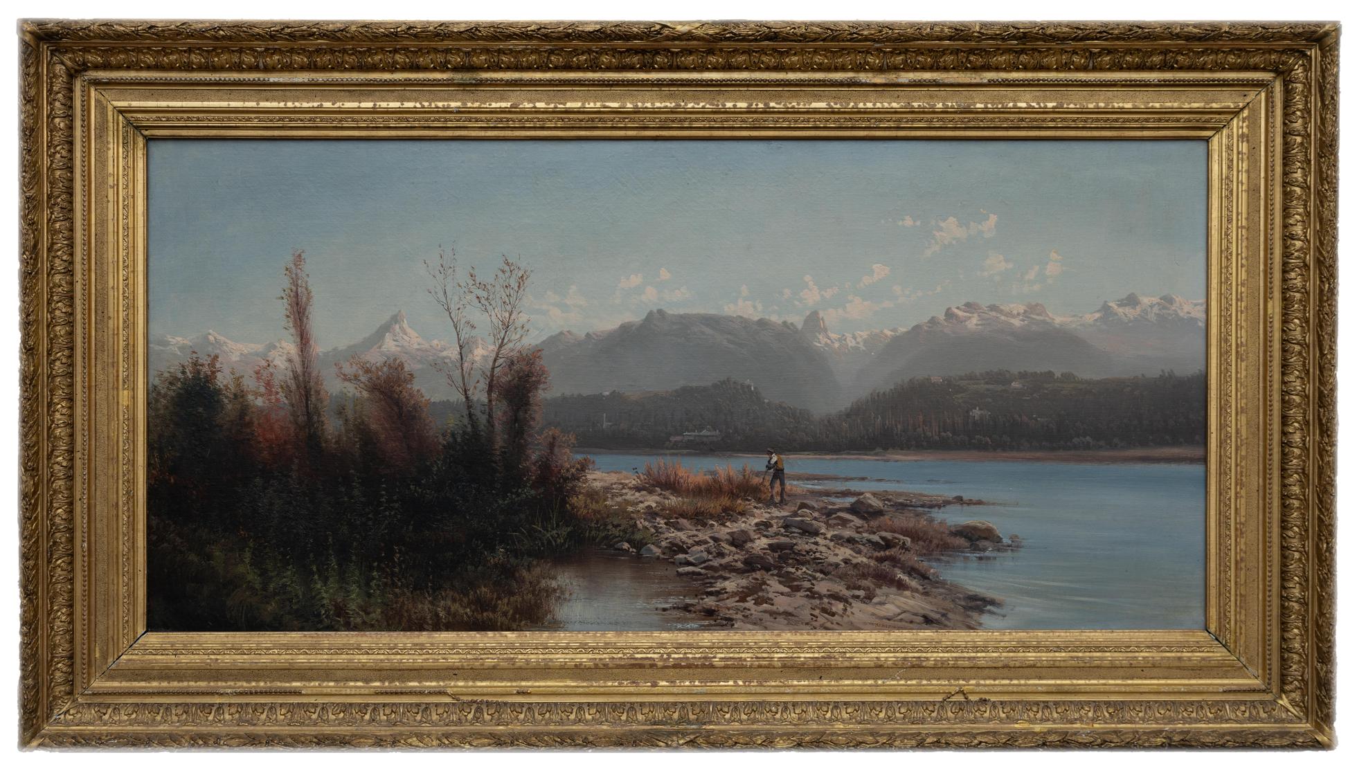 Eugenio Amus - Catena alpina - Brescia 1834 - Bordeaux 1899 - Olio su tela cm 69x146