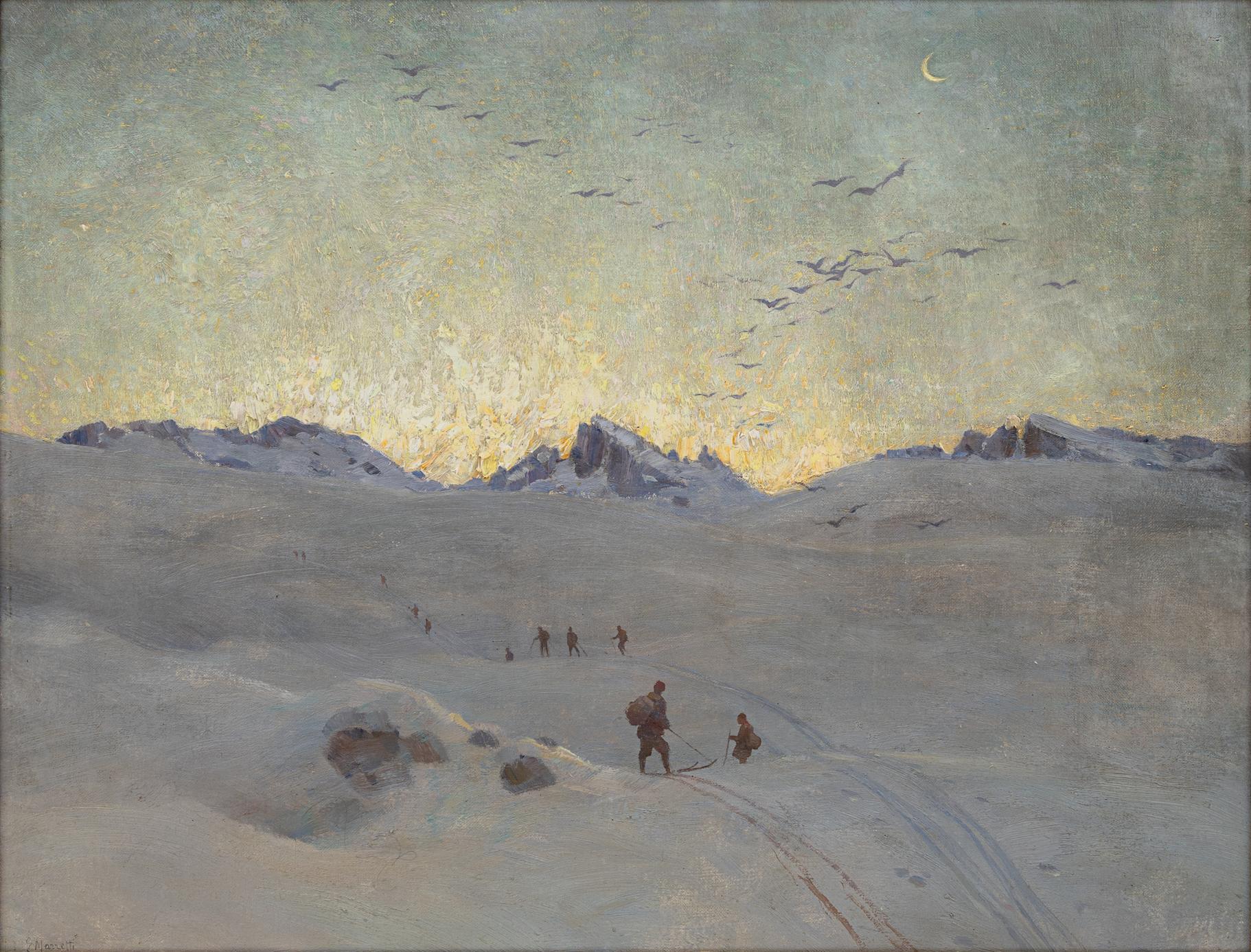 Emo Mazzetti - Prime luci - Treviso 1870 - Venezia 1955 - Olio su tela cm 49,5x62,5