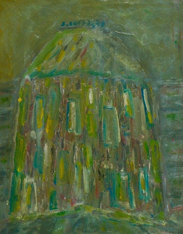 Silvio Loffredo (Parigi 1920) BATTISTERO Olio su tavola, cm. 50x40 Firmato in alto al centro. Sul verso: firma.