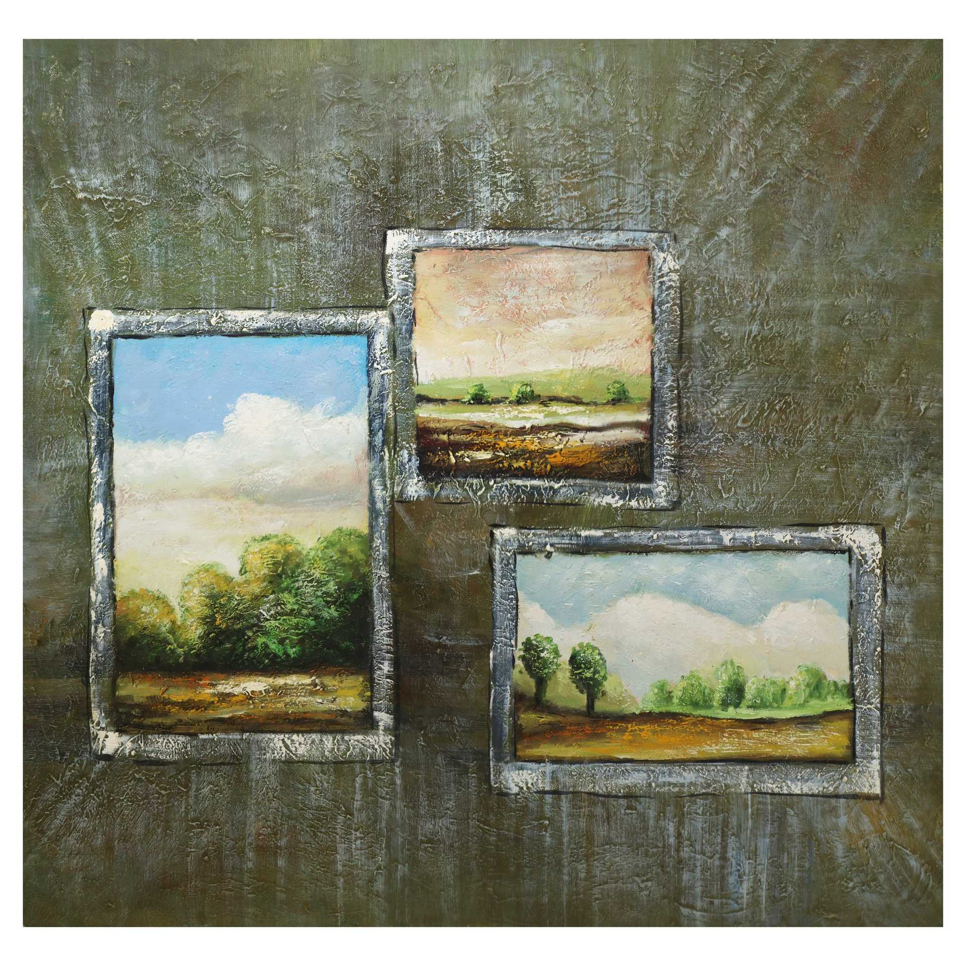 Tre paesaggi H cm 90x90 Olio su tela Pittore del XX secolo
