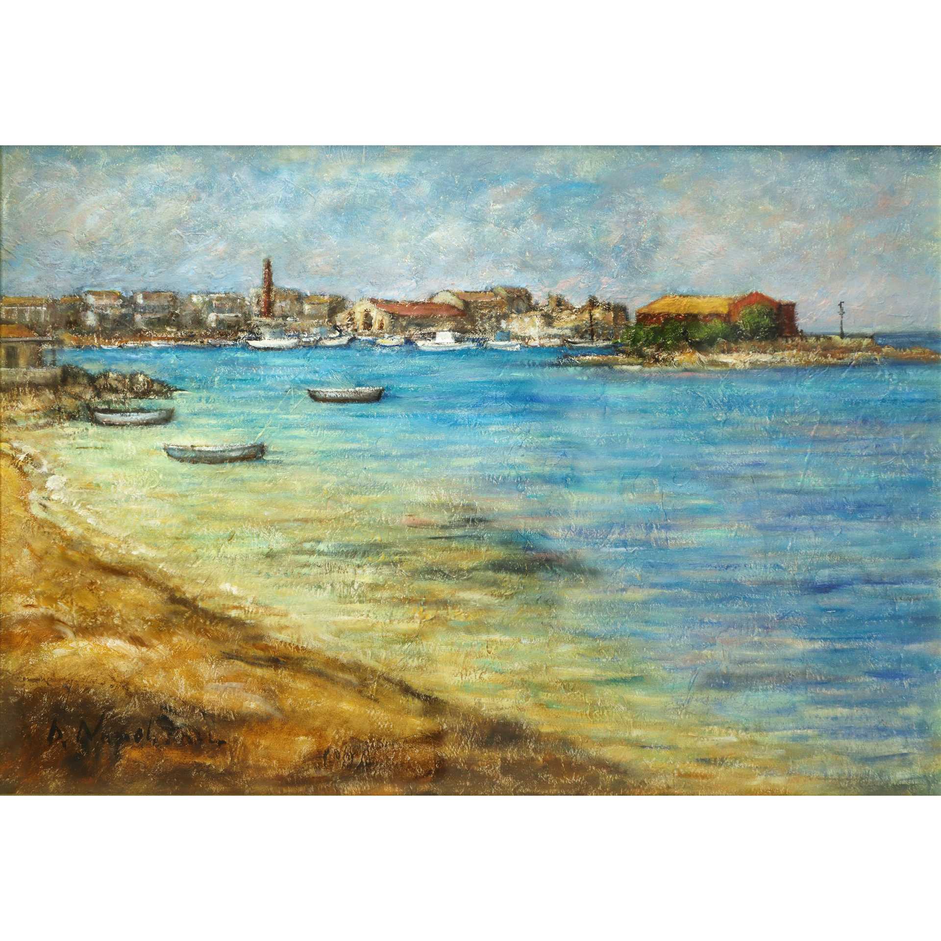 Davide Napolitano (Pachino) - Città di Marzamemi, Pachino cm 50 x 70, in cornice 72 x 92 Tecnica mista Firmato Napolitano in basso a sinistra
