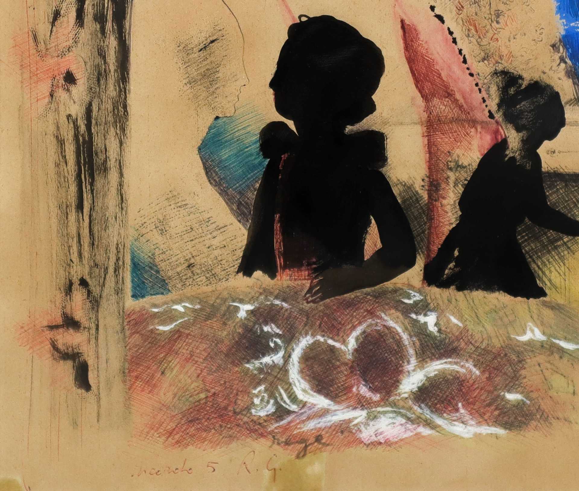 Personaggi cm 39x29 in cornice cm 61x51 Tecnica mista su cartone