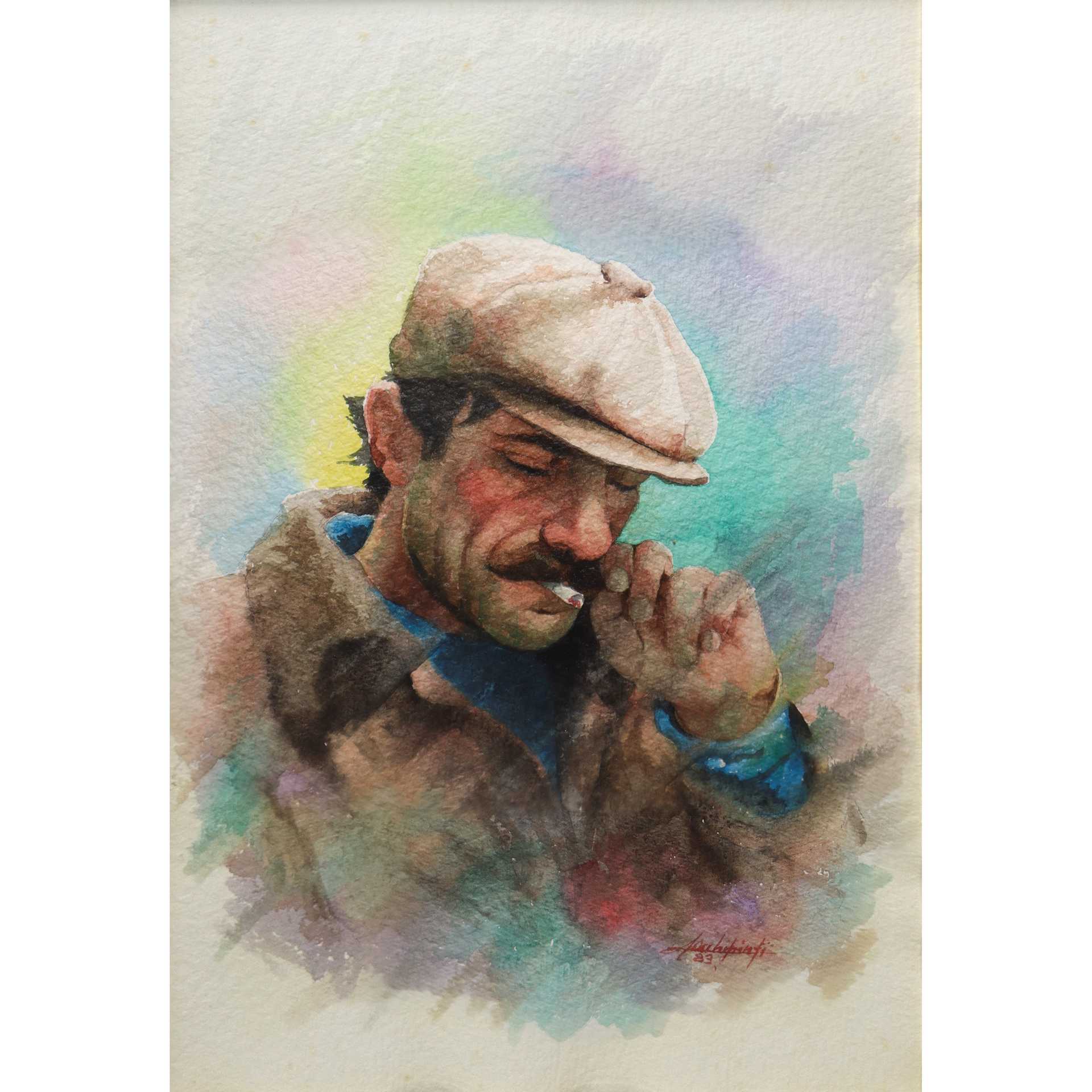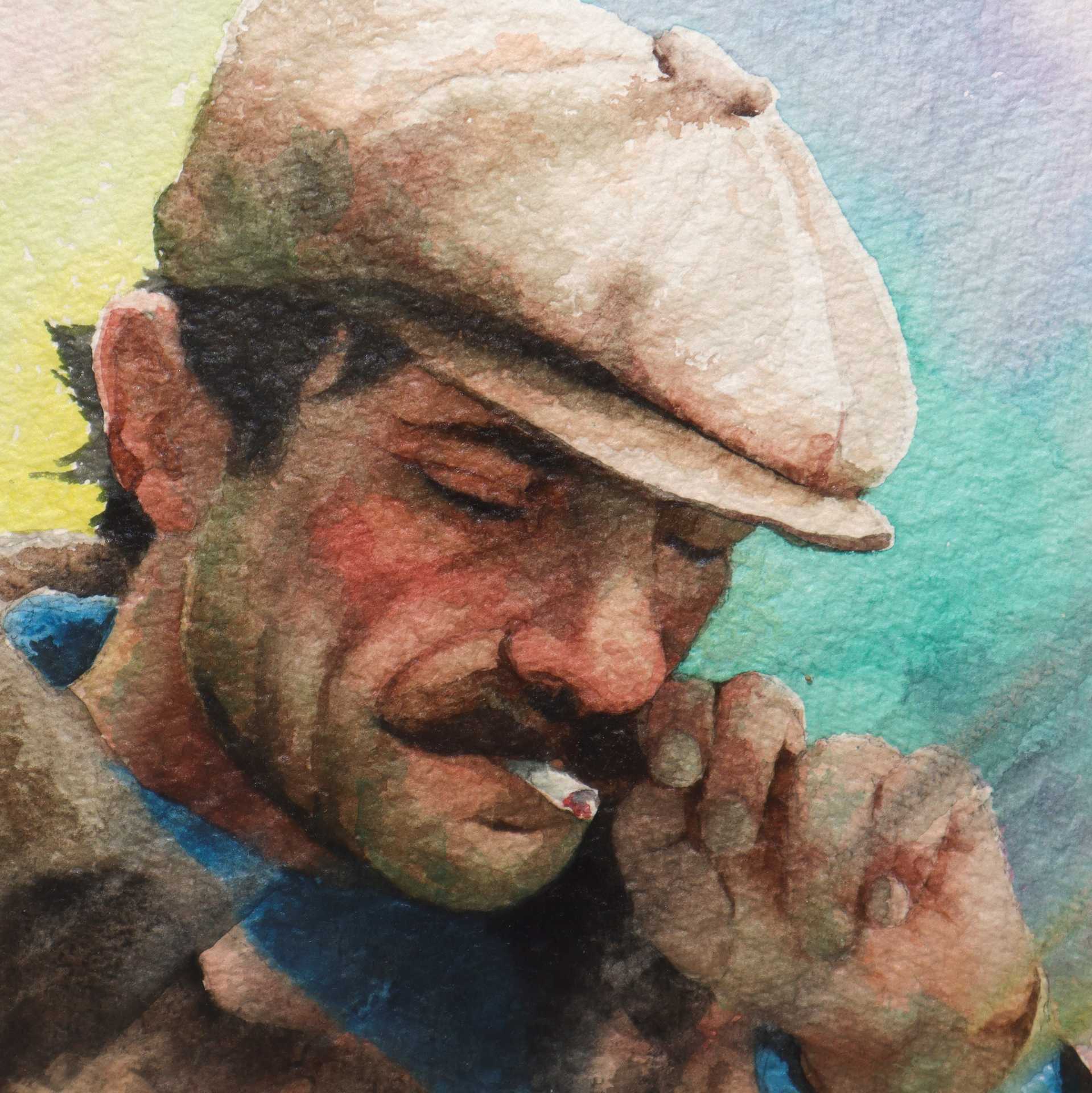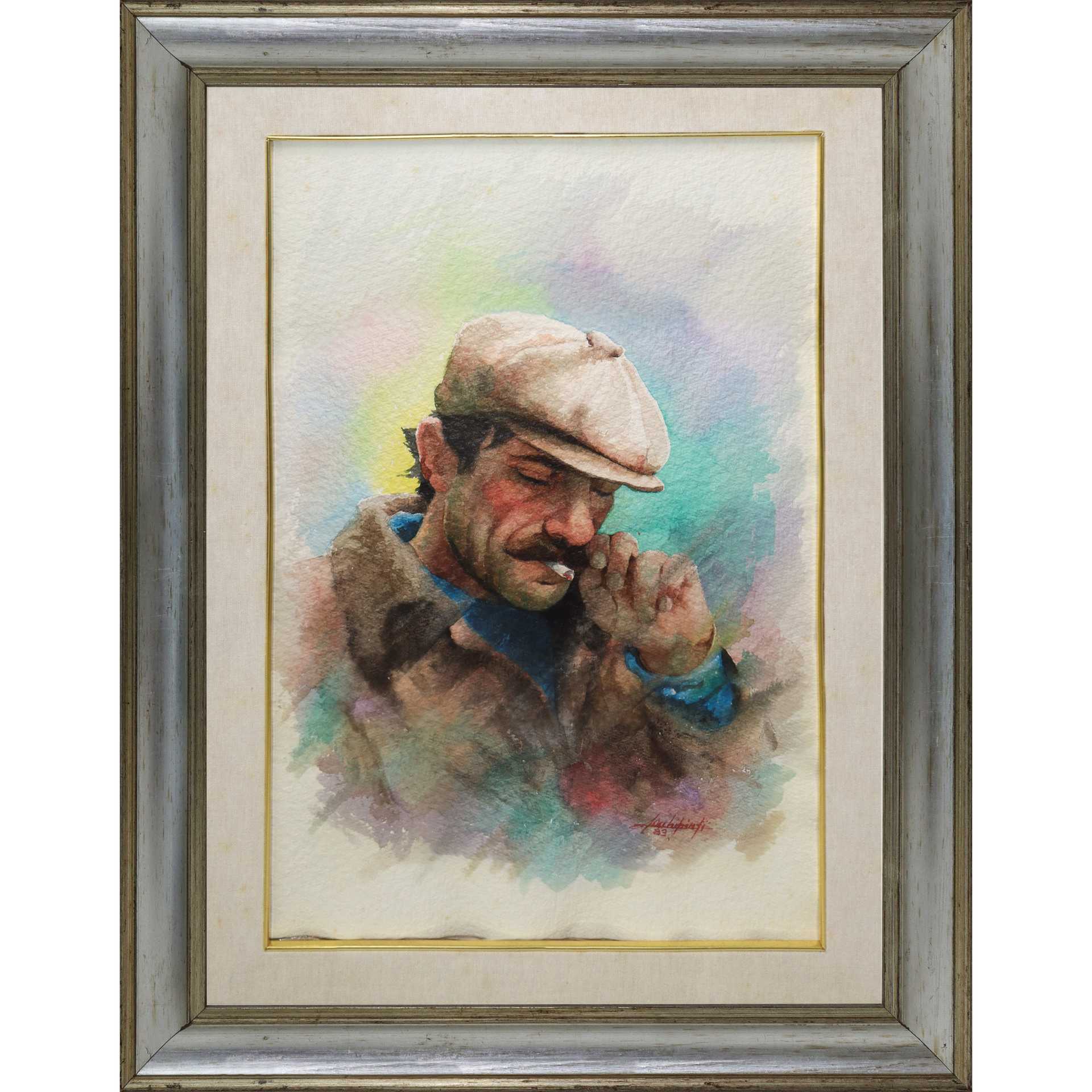 Ritratto di uomo con sigaretta h cm 55 x 37, in cornice 79 x 60 tempera su cartoncino Datata e firmata Occhipinti