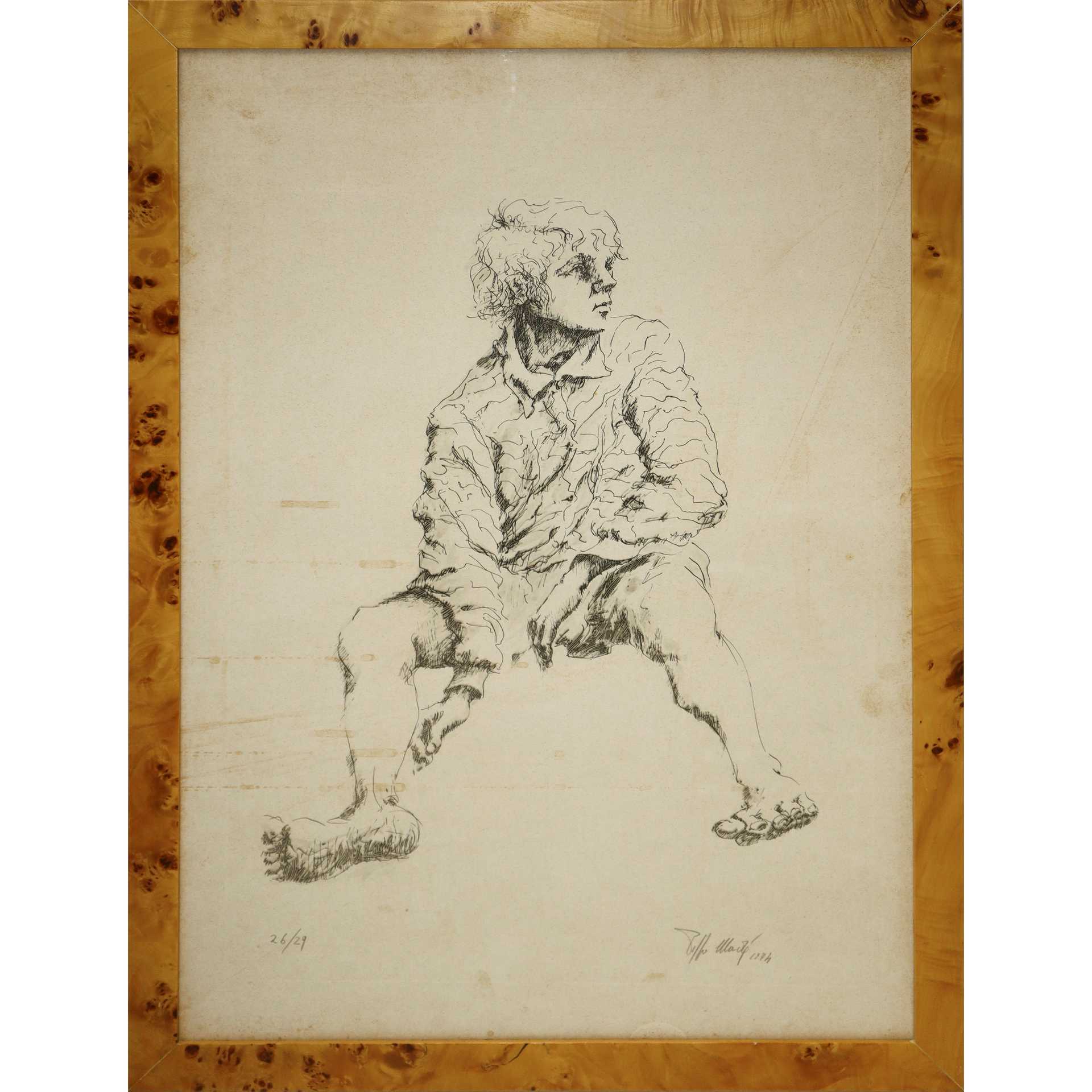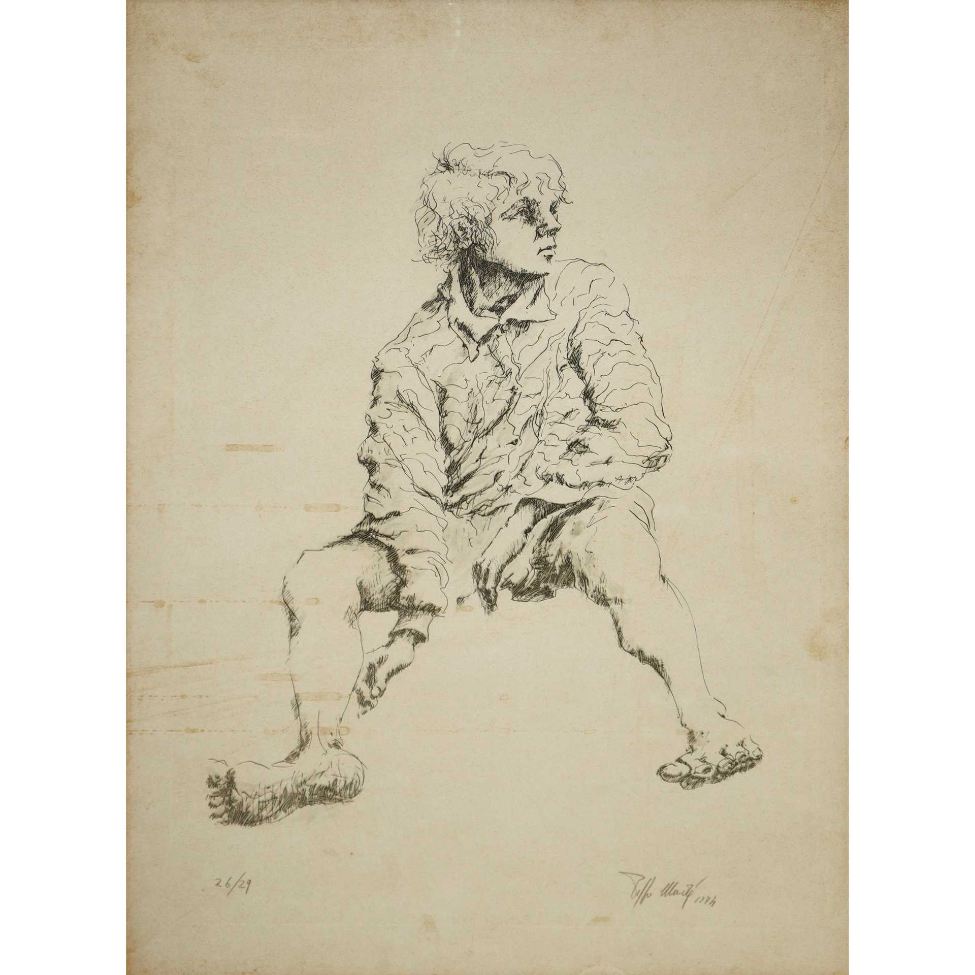 Pippo Made' (Palermo 1936) - Ragazzo a piedi scalzi, 1974 H cm 69x48- in cornice H cm 75x55 litografia Esemplare 26/29, in basso a sinistra. Firmato e datato in basso a destra.