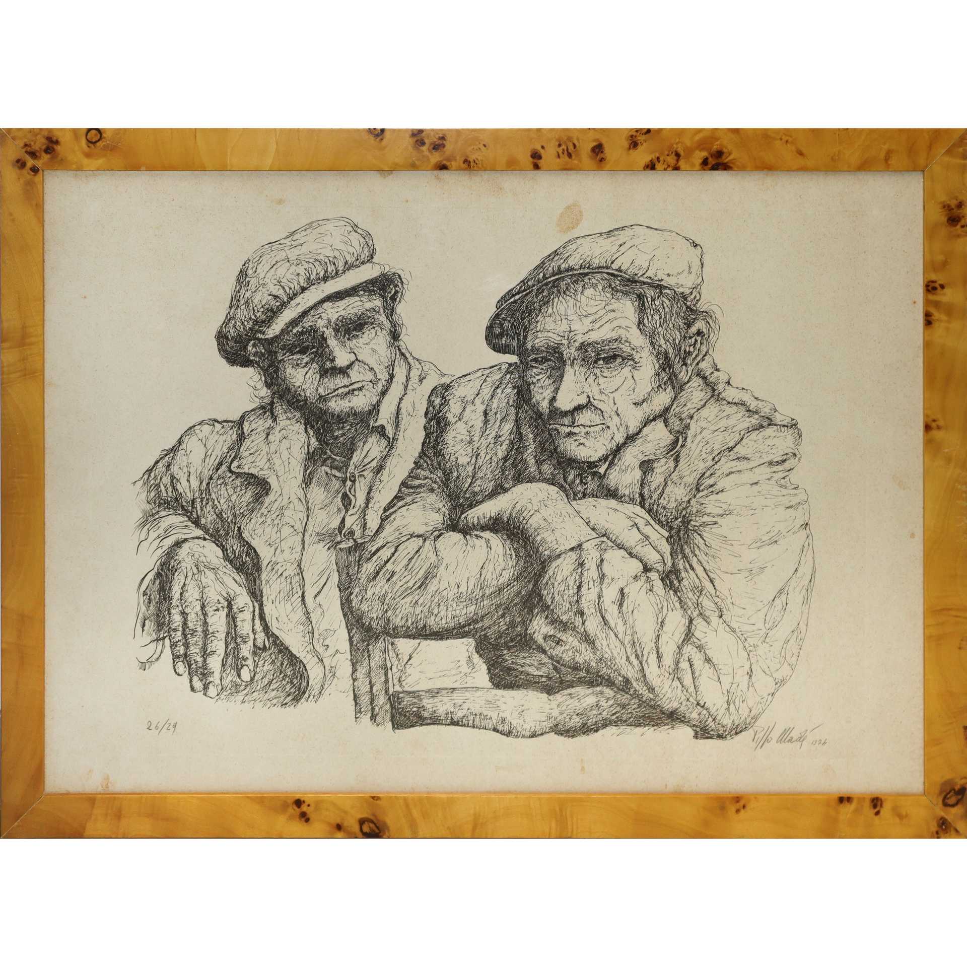 Pippo Made' (Palermo 1936) - Anziani, 1974 H cm 48x68 - in cornice H cm 54,5x75 litografia Esemplare 26/29, in basso a sinistra. Firma e data in basso a destra.