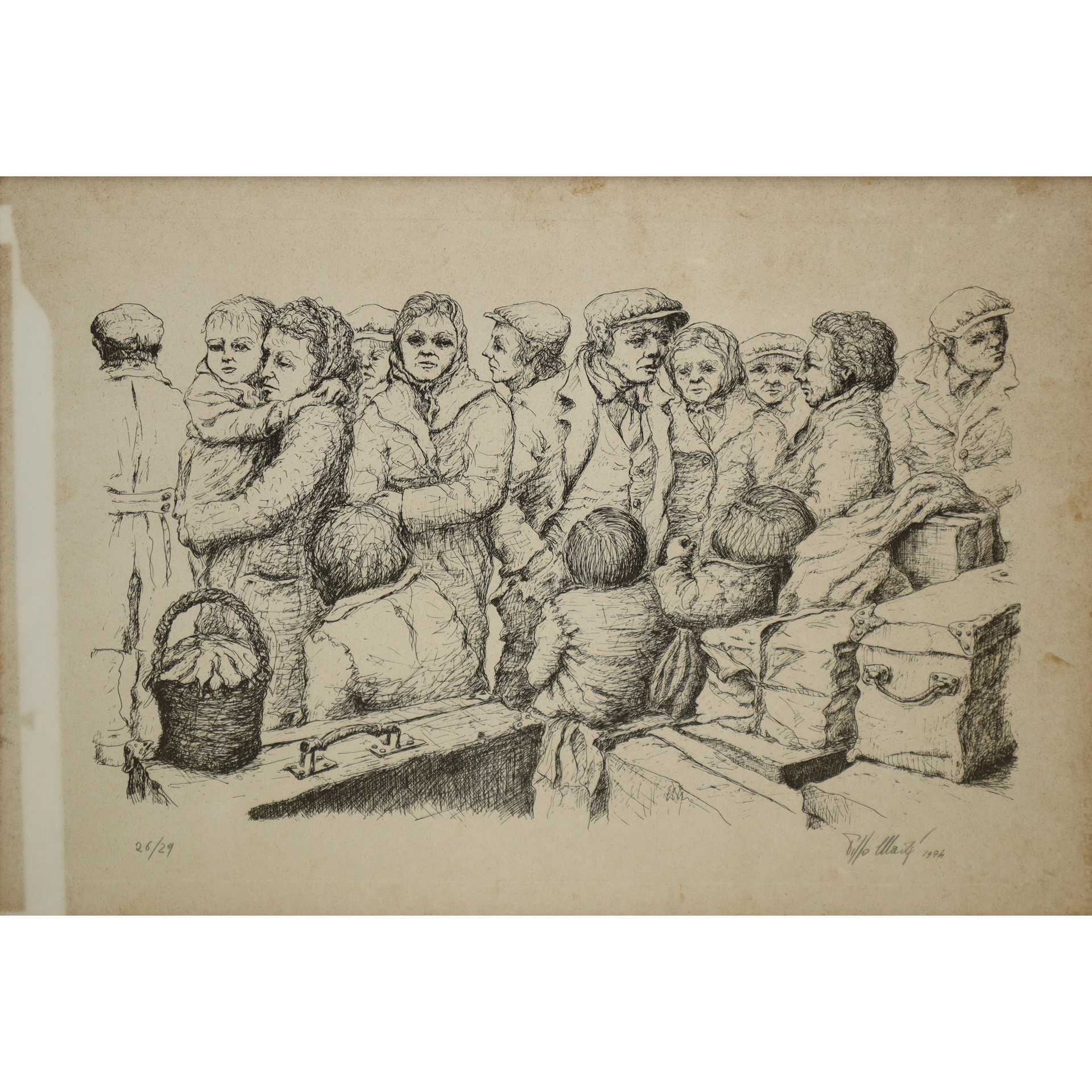 Pippo Made' (Palermo 1936) - Emigranti, 1974 H cm 55x75 litografia 26/29. Firmato in basso a destra