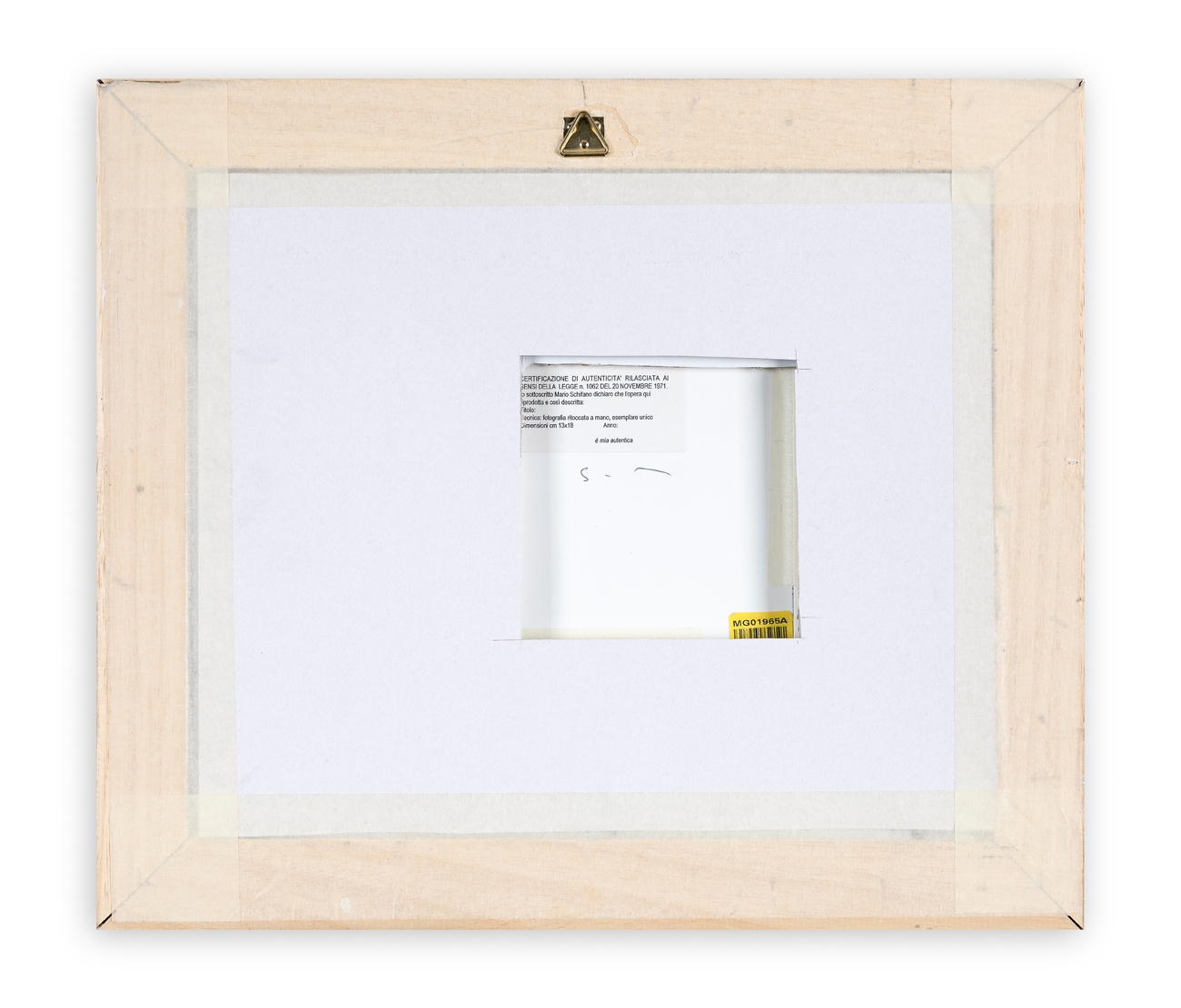Certificato di autenticità a cura dell'Archivio Generale dell'Opera Pittorica di Mario Schifano - Fondazione Mario Schifano (RM) rilasciato in data 15/06/2007